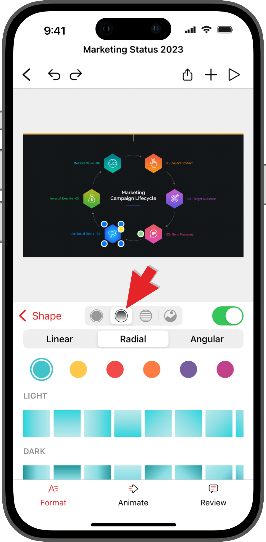 2. 標準のグラデーションスタイル(Linear、Radial、またはAngular)をタップします