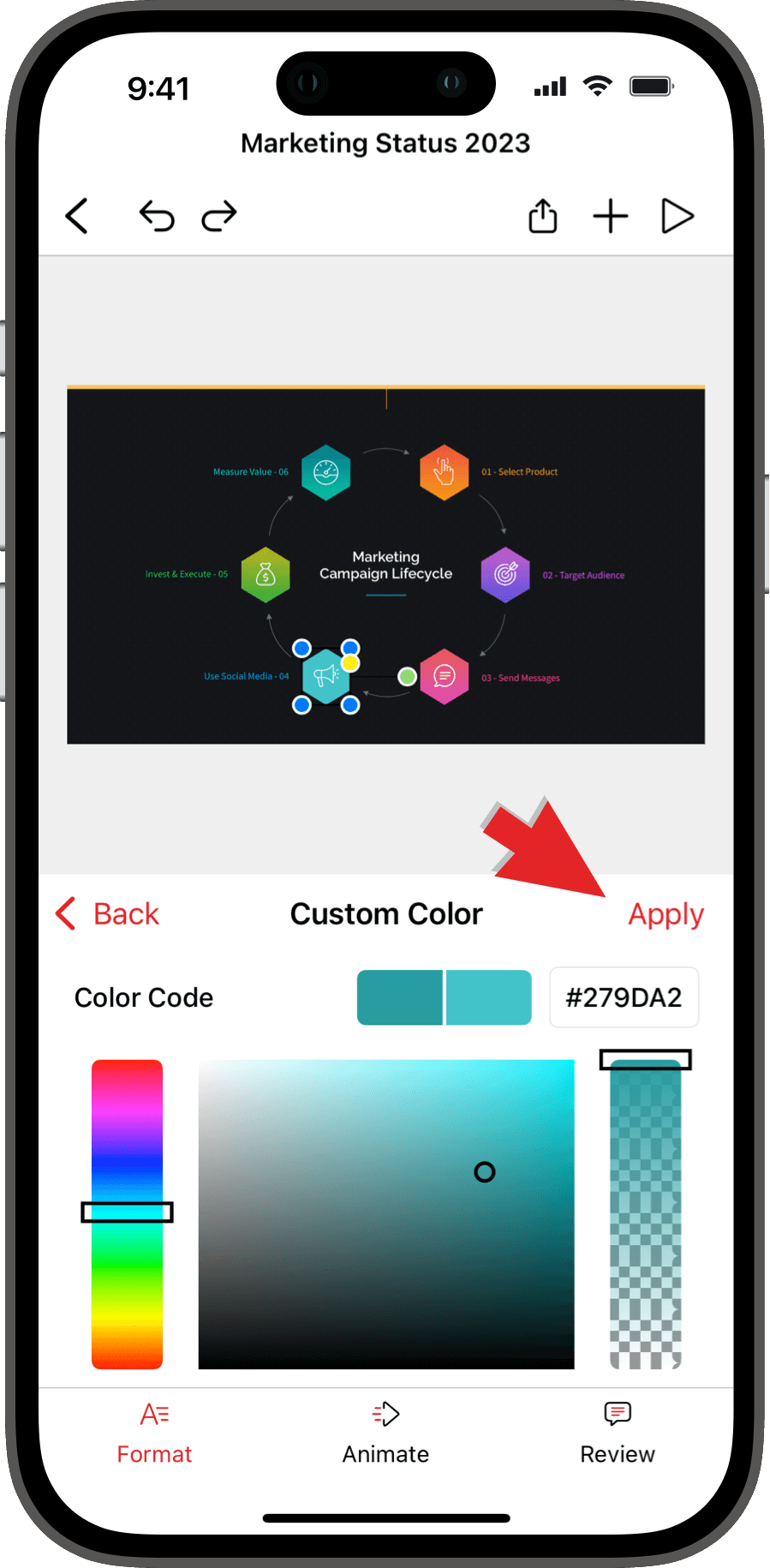 3. その他の色をタップして色をカスタマイズし、適用を押します。