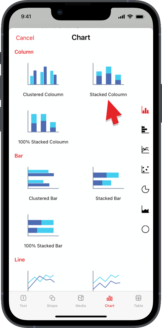視覚的なデータ表現は、単なる数字よりもよくその他の重要な影響を与えます。表示アプリでは、多種多様なチャートタイプを、列、棒グラフ、折れ線グラフ、Scatter、Pie、地域などに分類済みです。あなたのニーズに最適なものを選択してください。