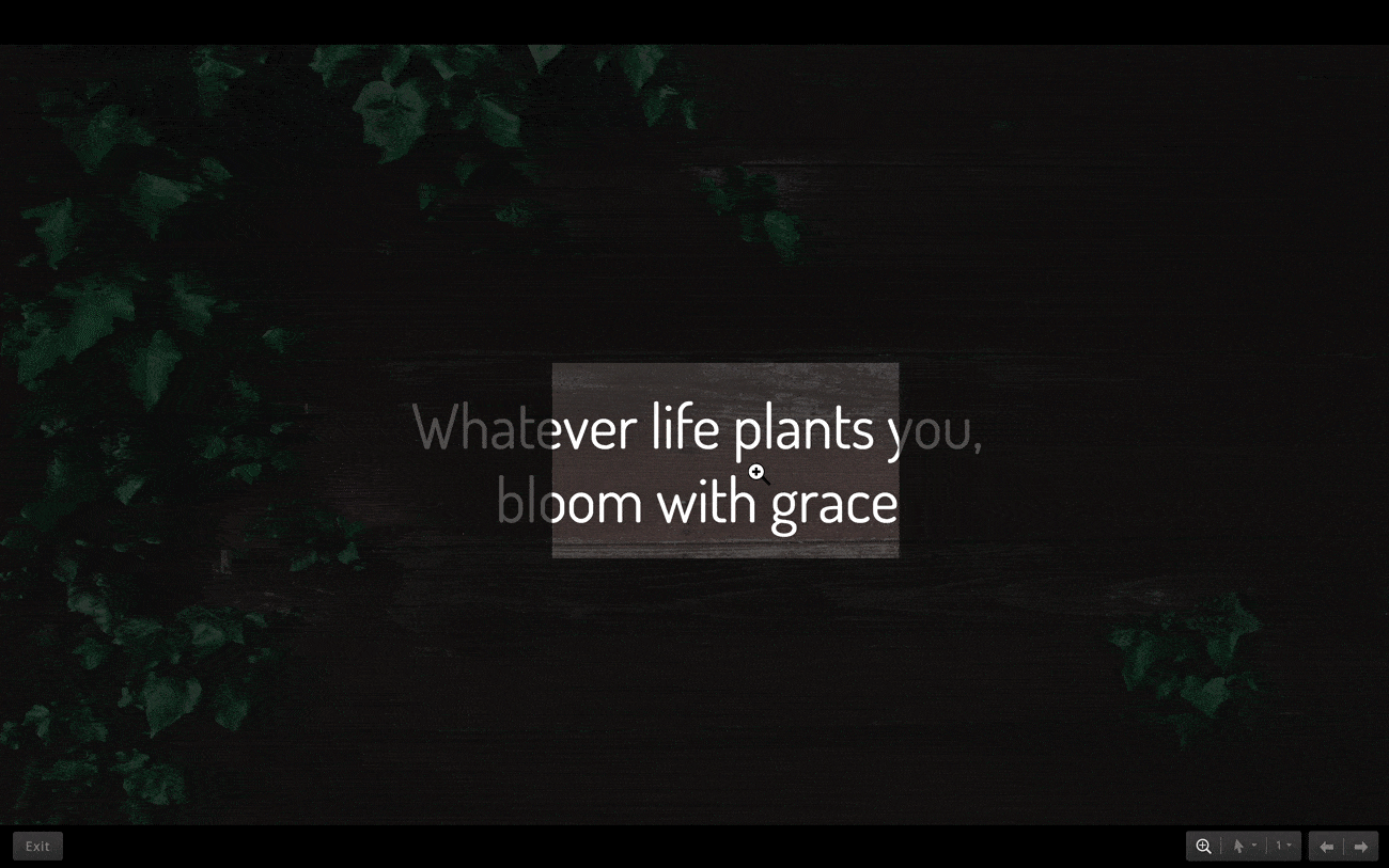 • 詳細な配信ツール- プレゼンテーション配信ツールを使用して、スライド上の詳細を強調し指すことができます。Zoho Showにおける詳細なプレゼンテーション配信ツールについてはこちら