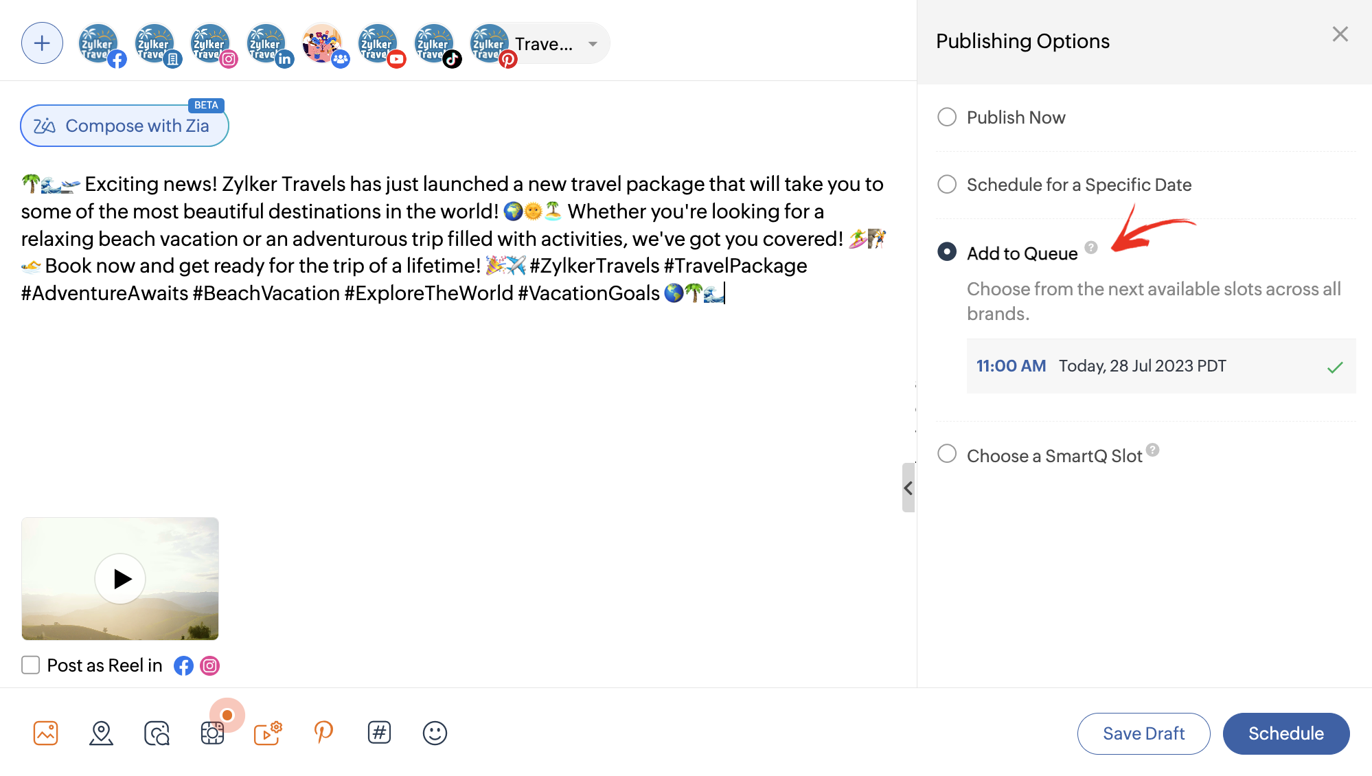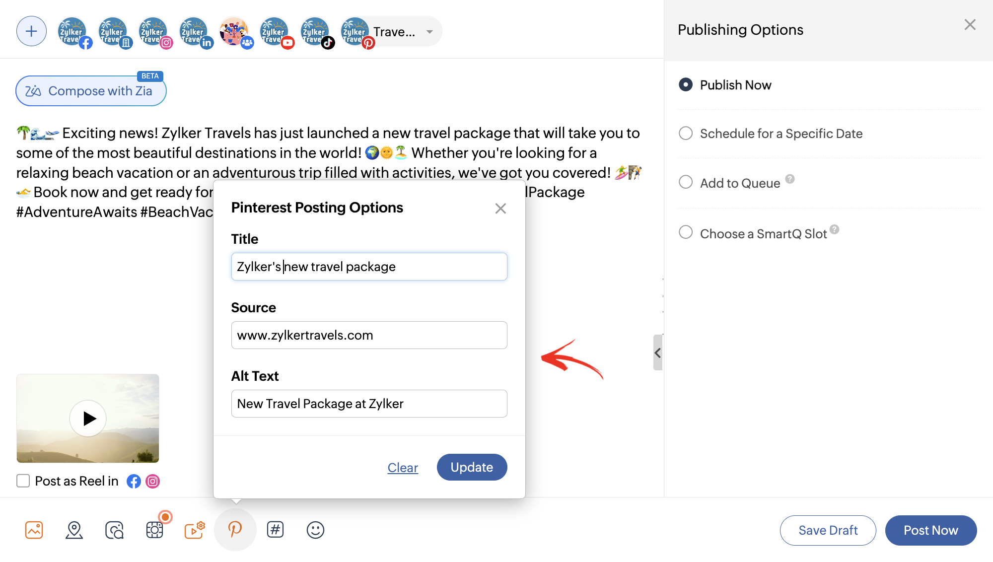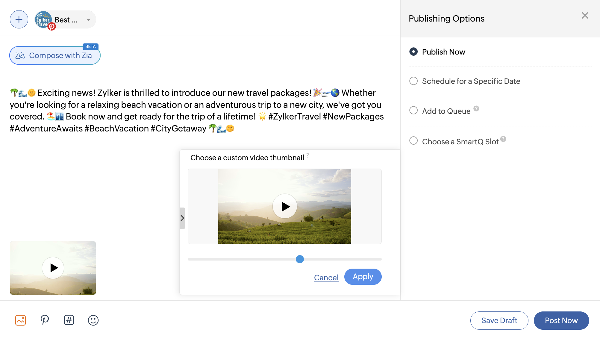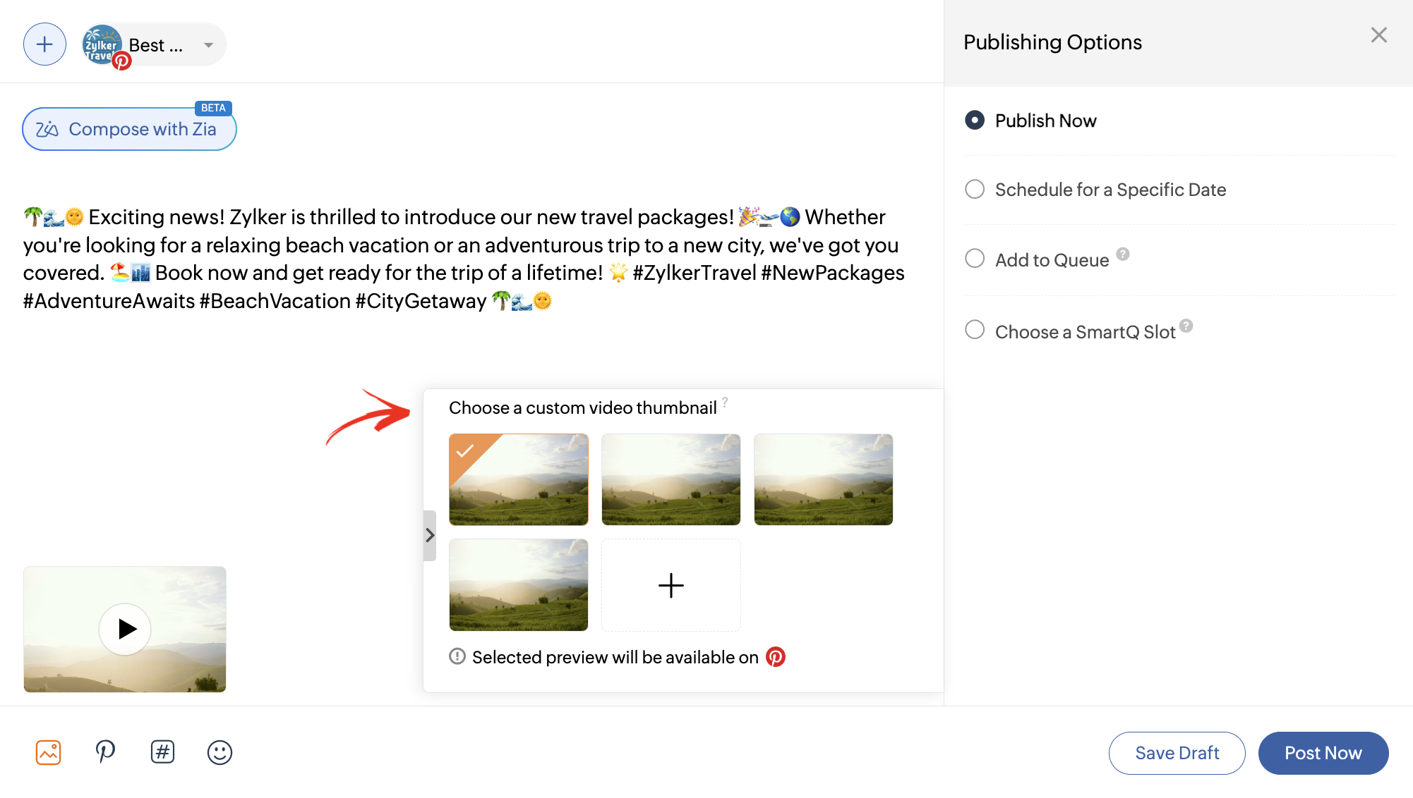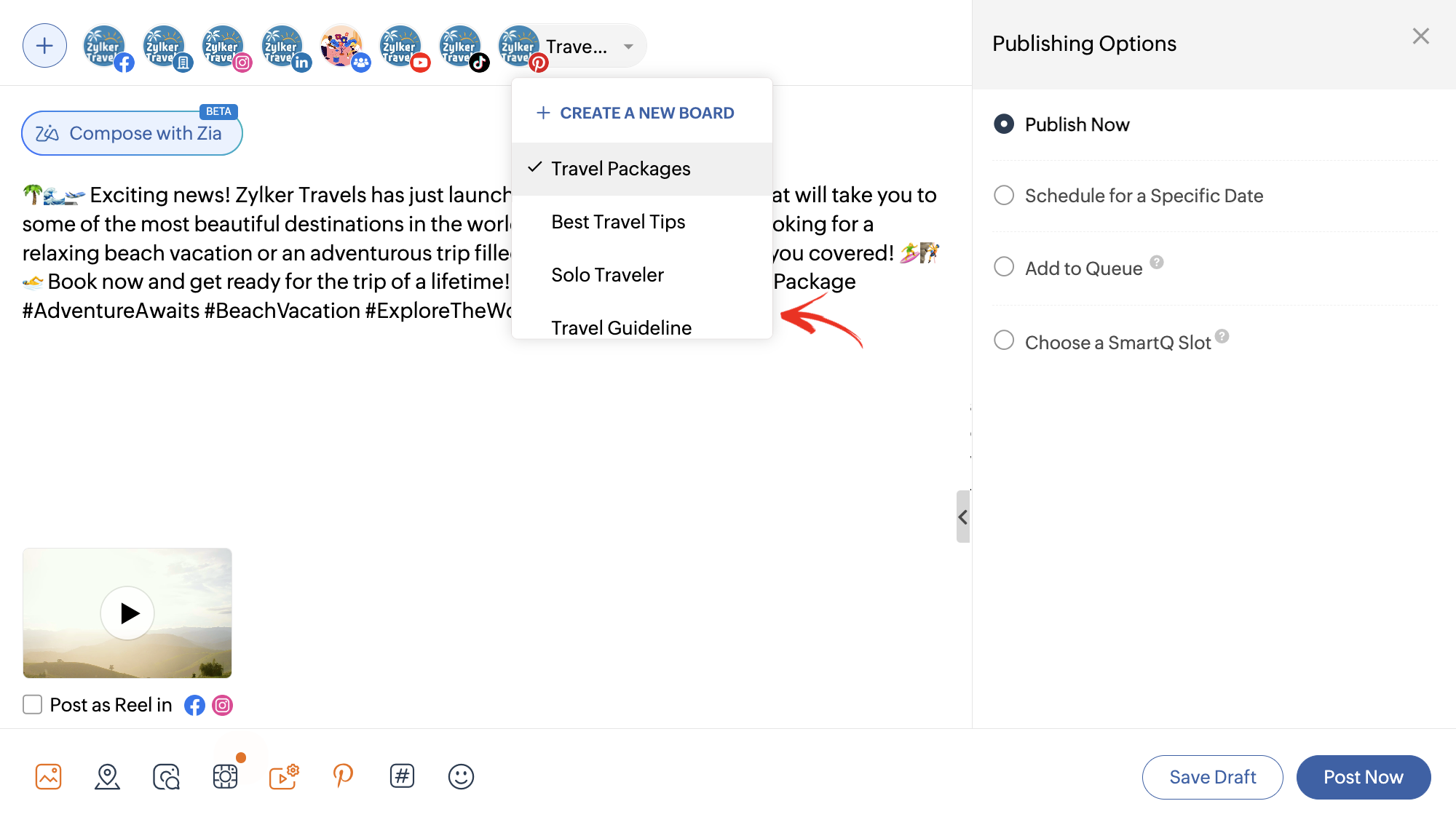Zoho Socialで作成中のピンを下書きとして保存できます。