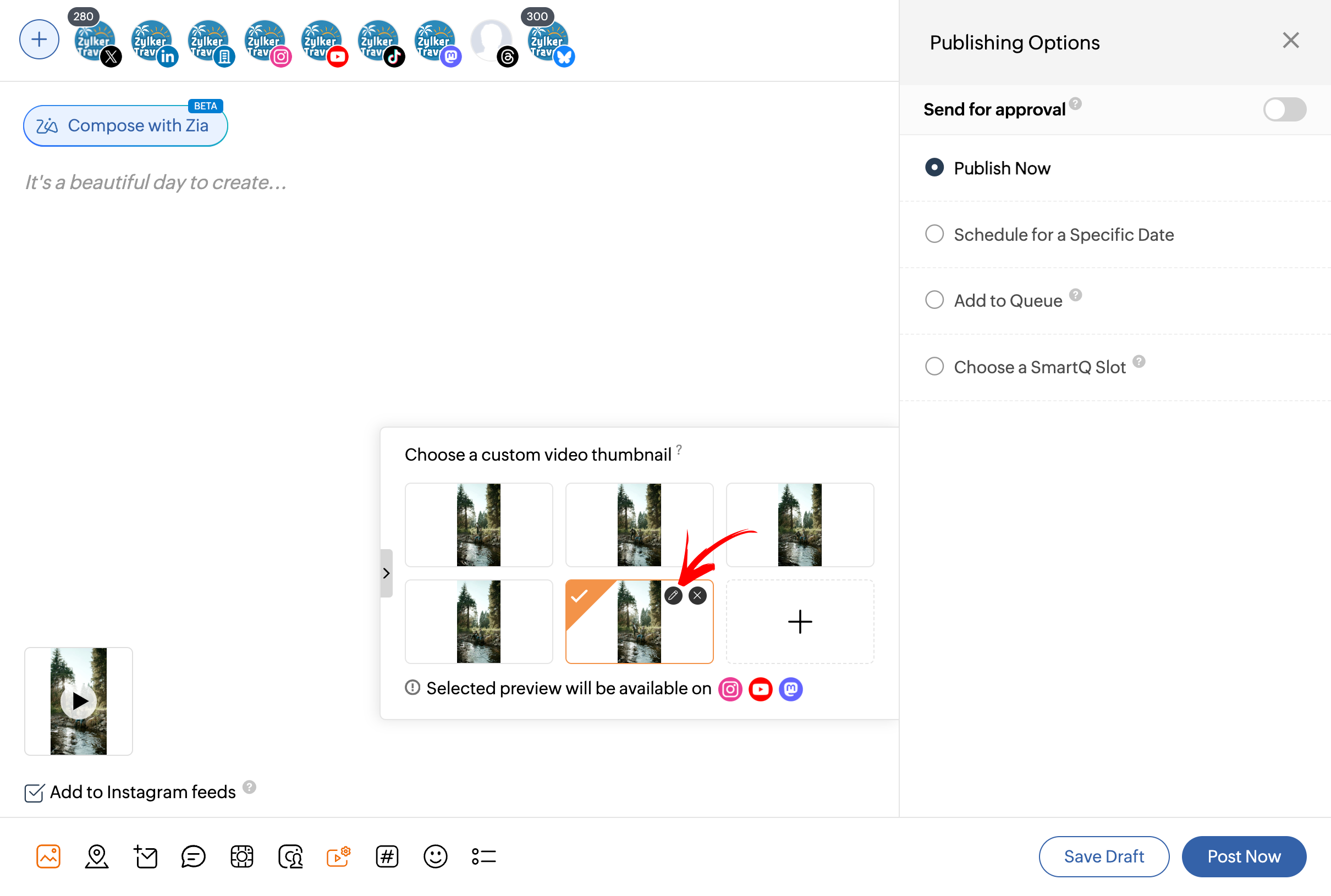 ii) デスクトップ、メディアライブラリ、クラウドピッカー、またはCanvaから画像をアップロードしてサムネイルとします。一度アップロードしたら、画像の上の編集アイコンをクリックして別の画像に置き換えることができます。