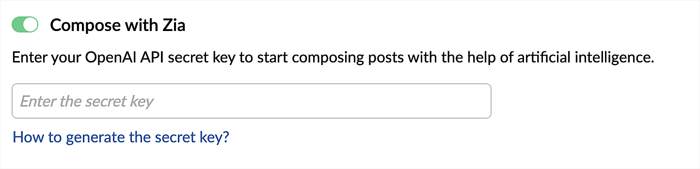 現在、組織で設定可能なシークレットキーは1件のみです。 Ziaによる投稿内容の提案機能を通じて投稿を公開するには