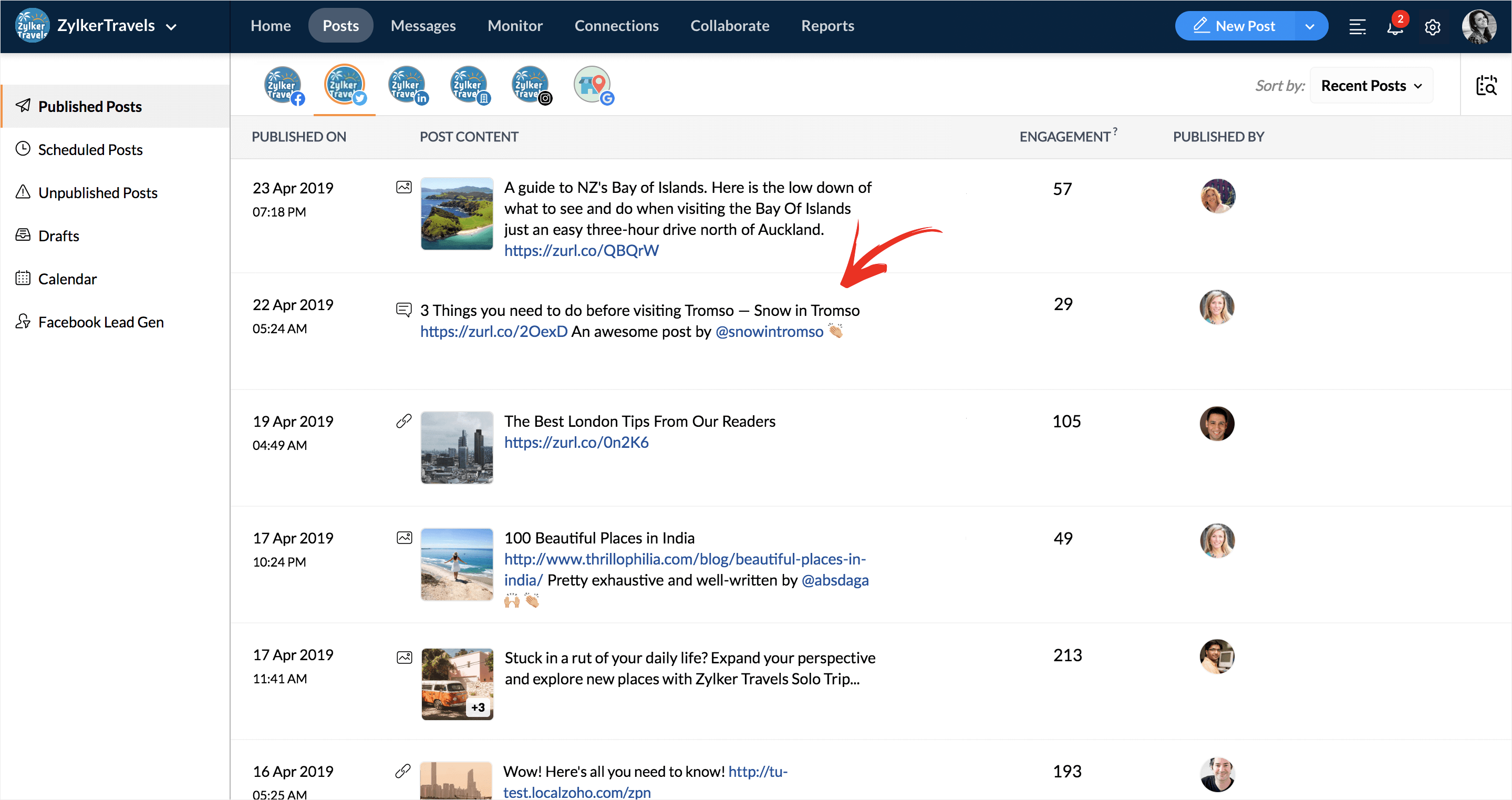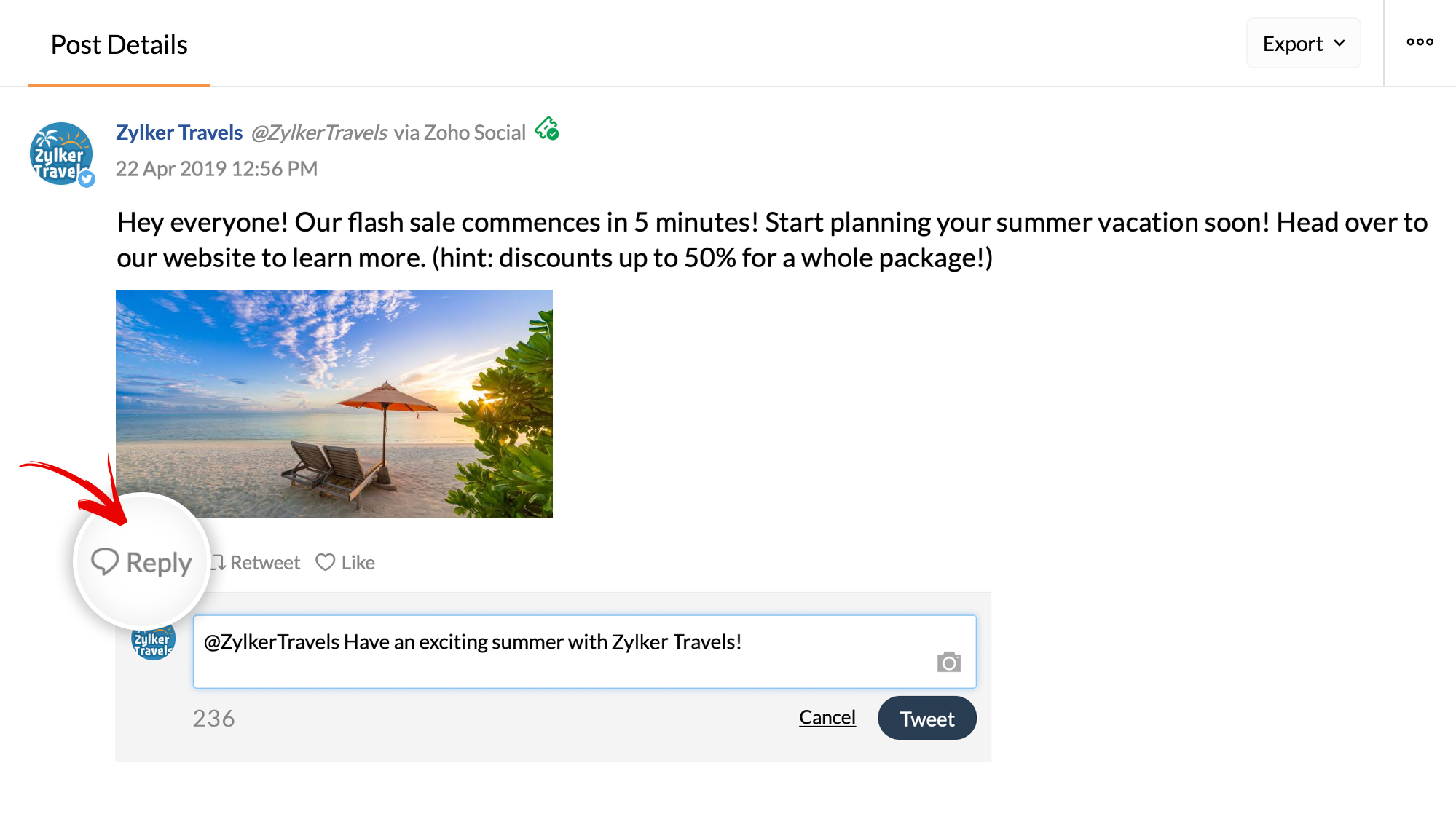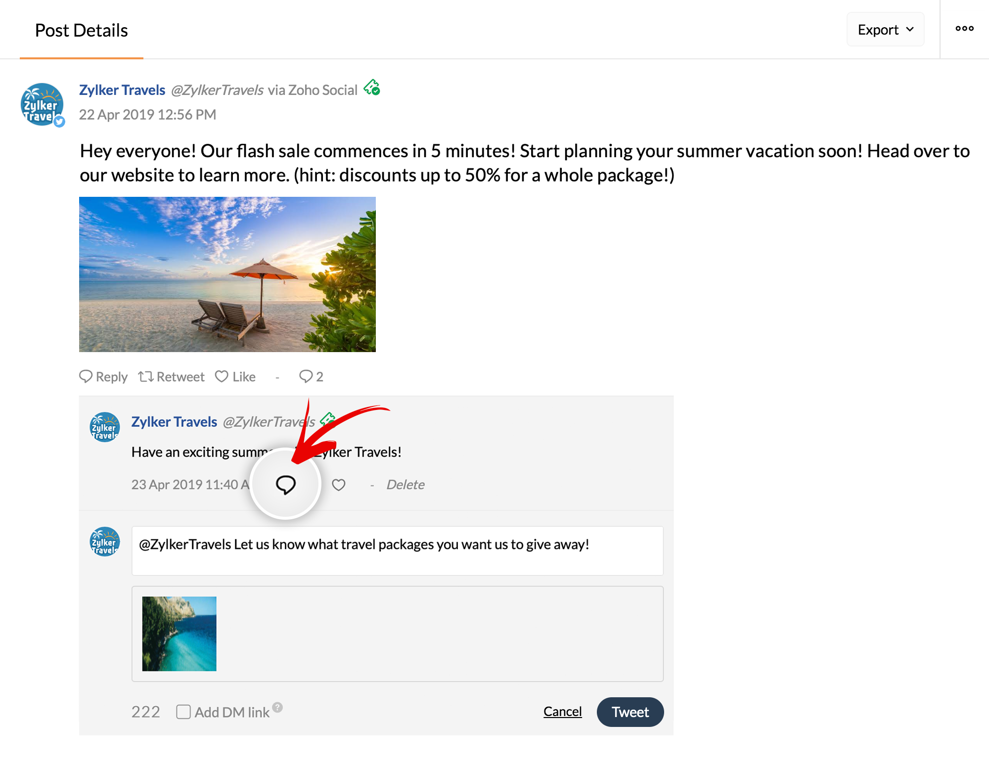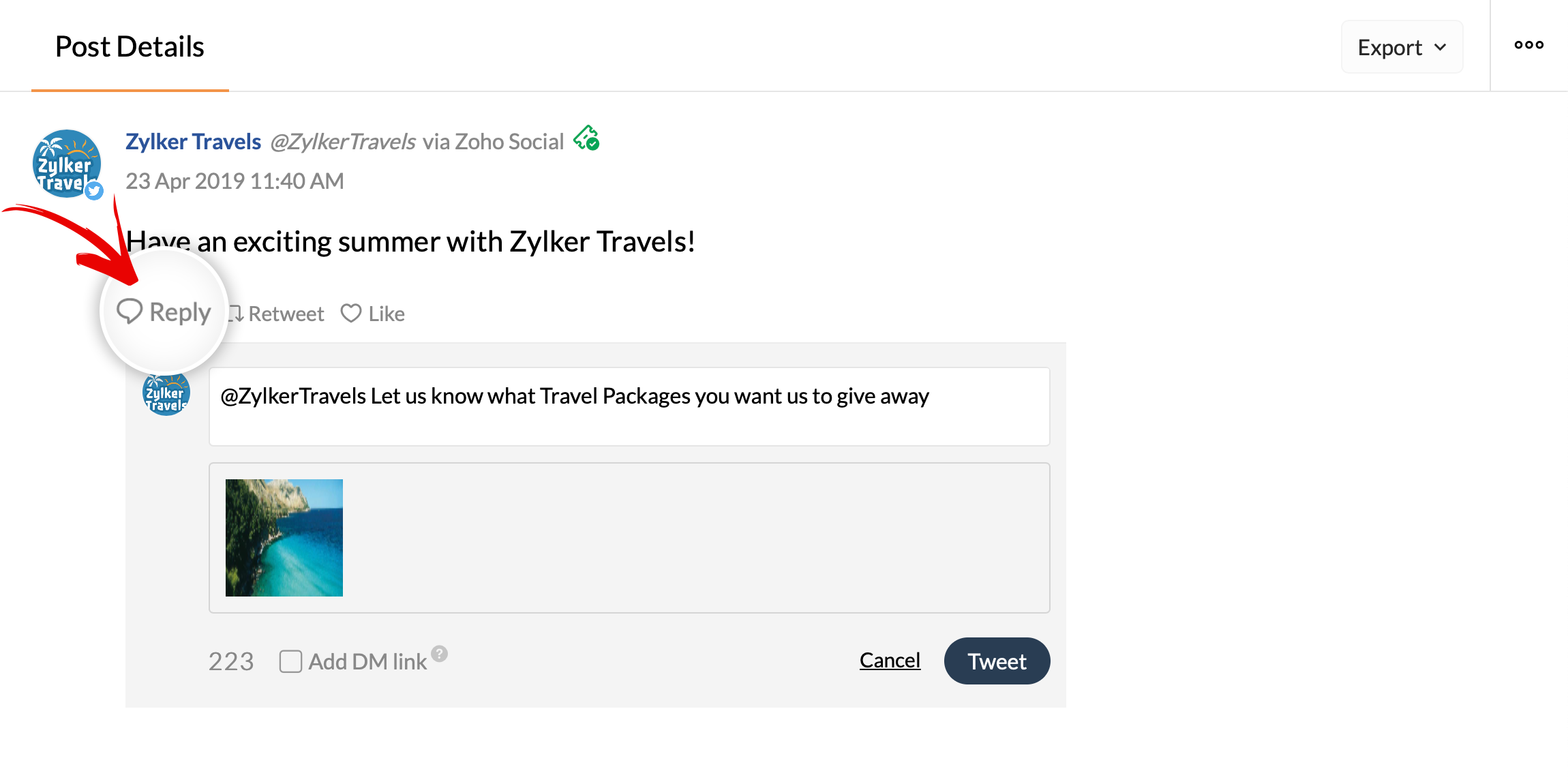 Zoho SocialでTwitterのスレッドを作成するには、次の手順を実行します: