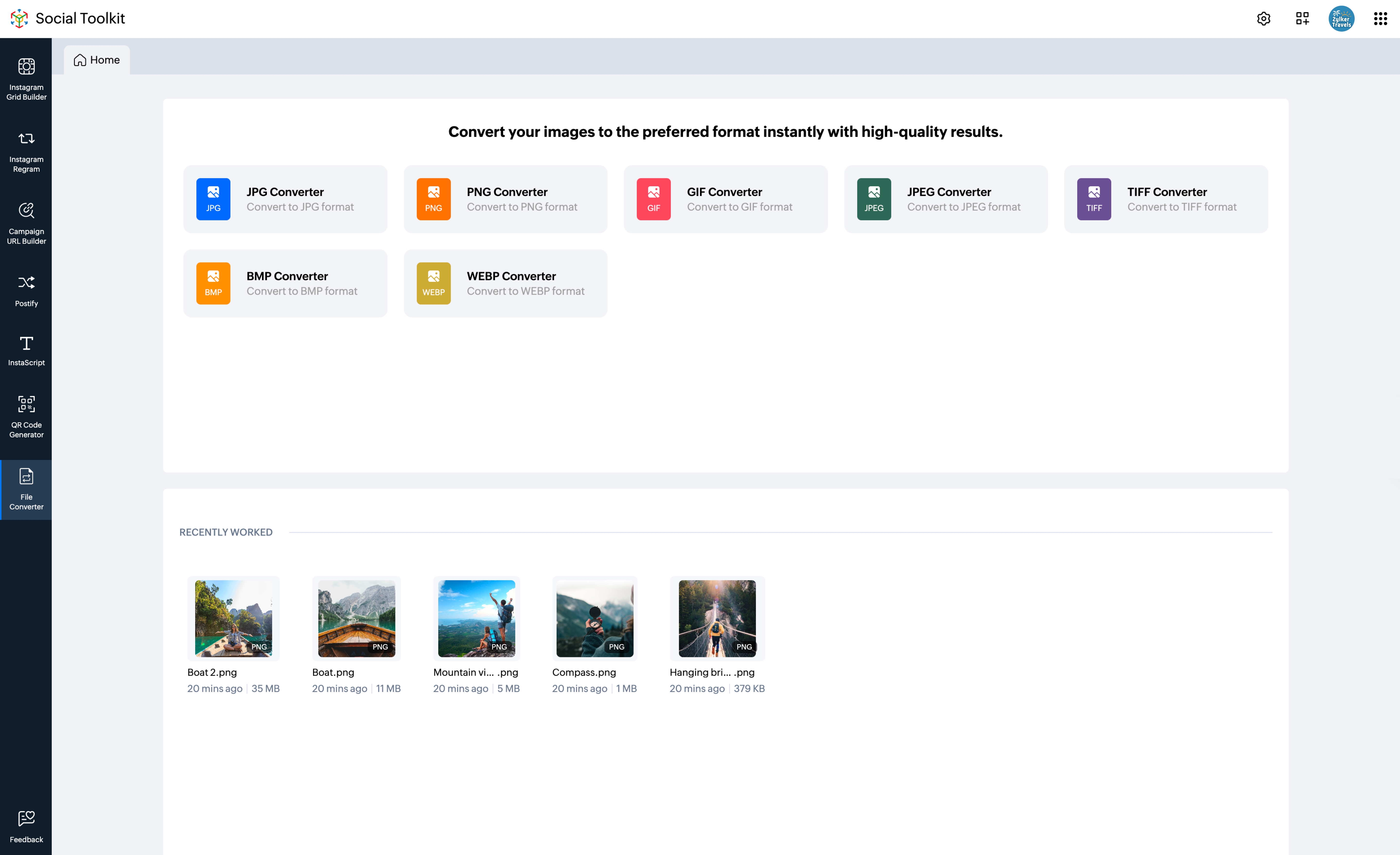 ファイルコンバーターにアクセスし、数回クリックするだけで画像を標準的な形式に変換できます。
