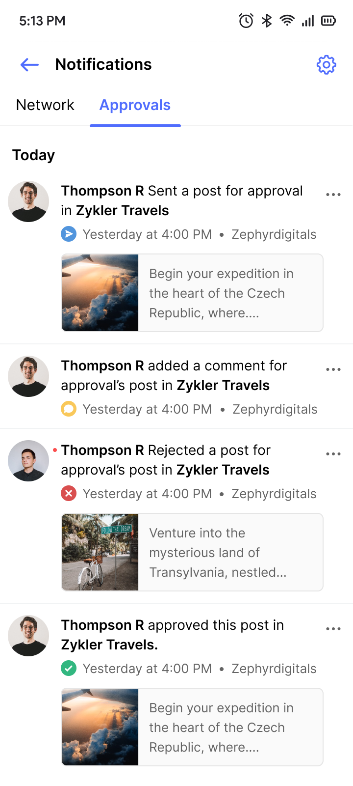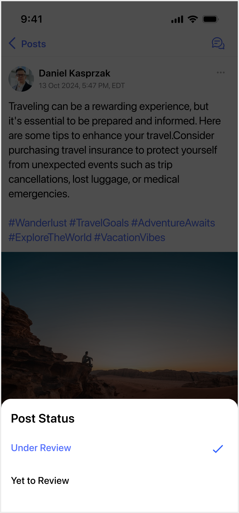 承認用の投稿を受け取ると、リアルタイムの通知が届きます。モバイルアプリを開くと、通知がホームタブに表示されます。