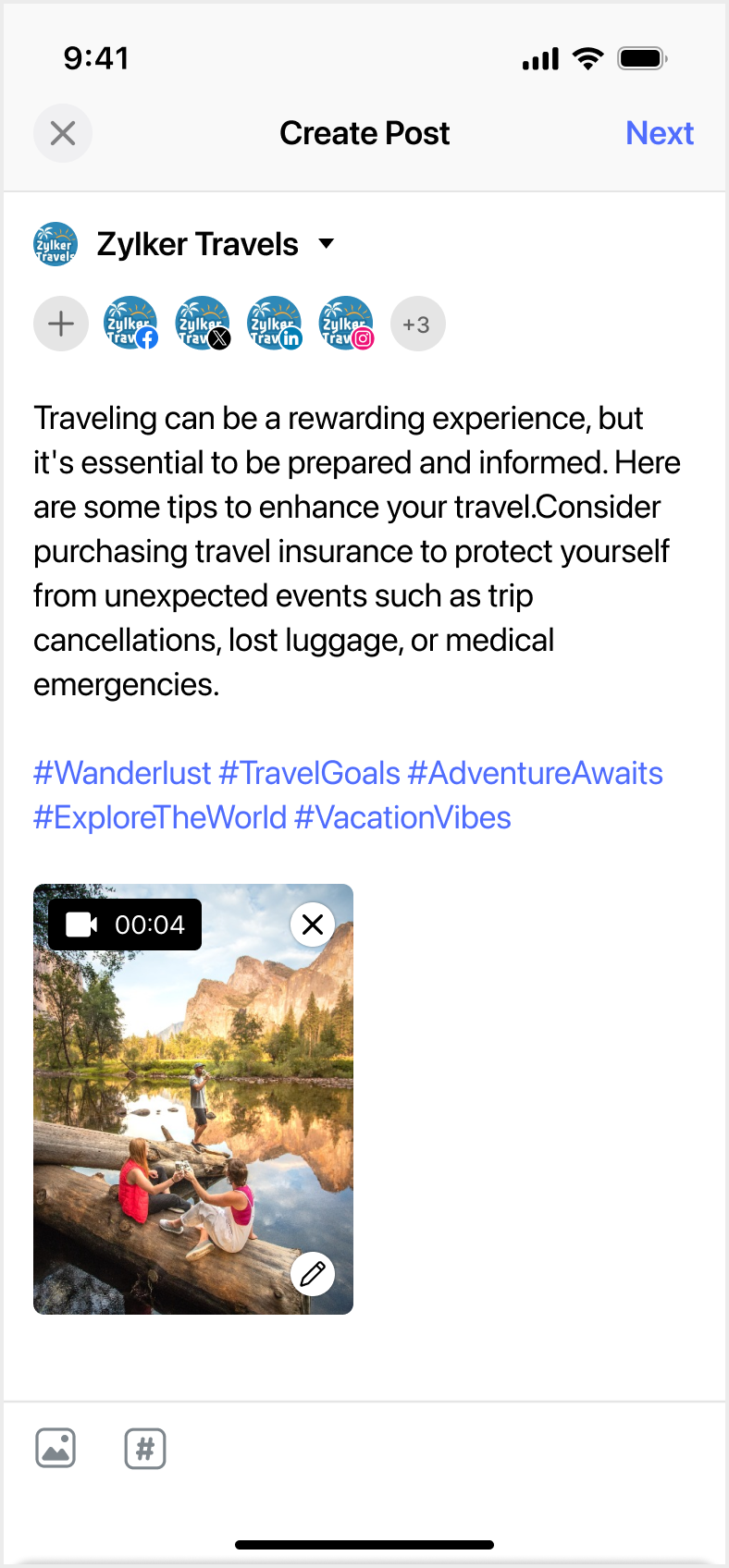 3. キャプションに内容、関連メディア、ハッシュタグを追加します。