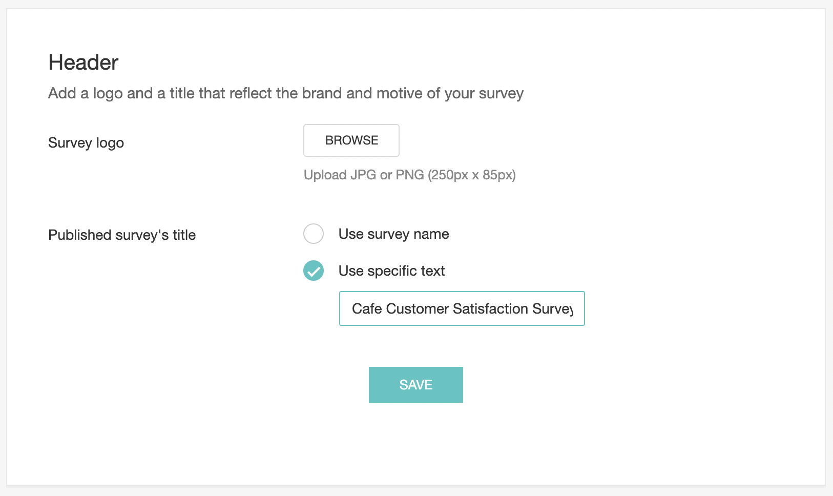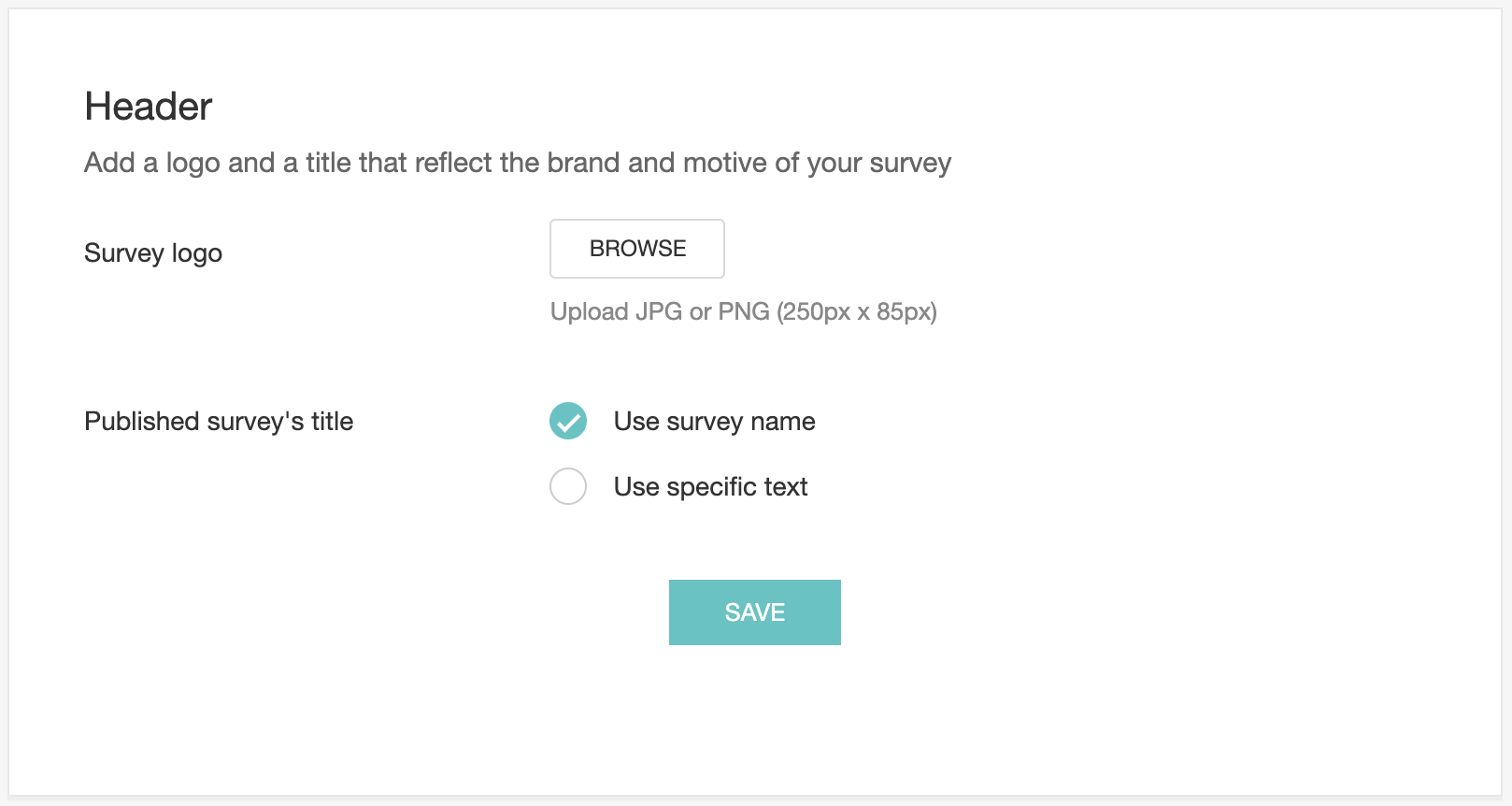 アンケートの作成は、質問を追加して終わりではありません。テーマを適用して目を引くようにデザインすることが大事です。このページでは、そのための設定やカスタマイズ方法を紹介します。アンケート作成画面の[設定]タブから、アンケートをカスタマイズできます。ヘッダーとフッターの設定、ボタン名の変更、特定の回答者向けのアンケート終了ページのカスタマイズなどが可能です。アンケートのヘッダー設定では、ロゴやタイトルを追加または変更できます。アンケートに自社の製品やブランド名を反映させることが可能です。