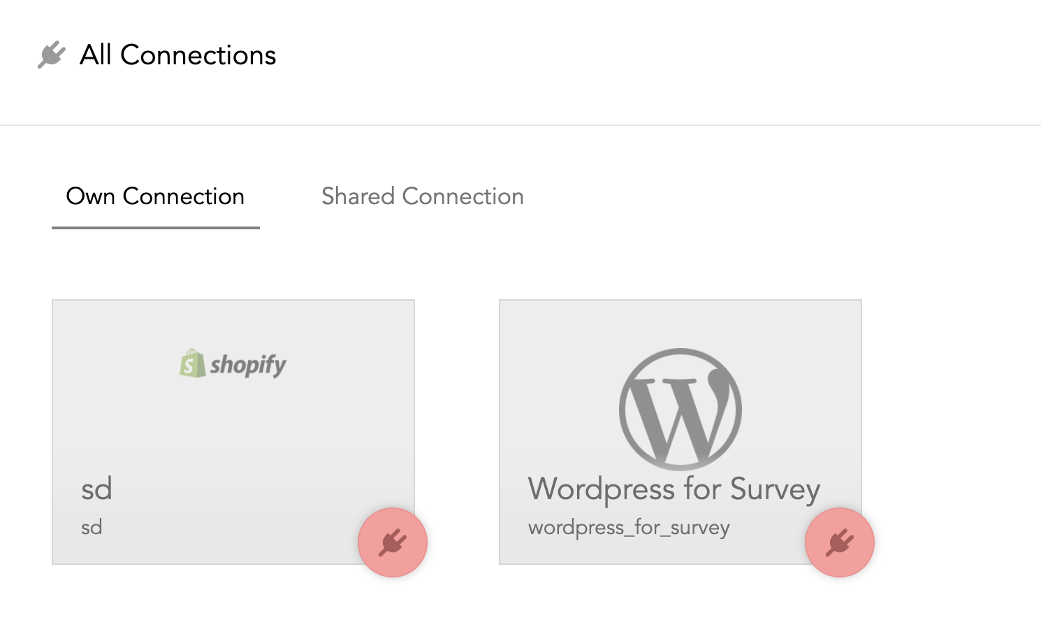 2. 自分が作成した連携サービスを表示するには、[Own Connection](自分が作成した外部連携)をクリックします。