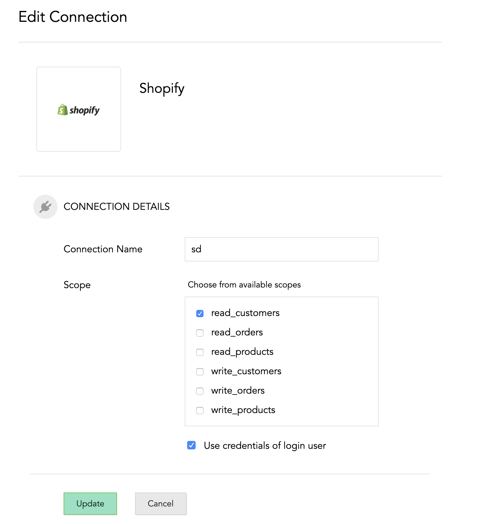 6. ログインしているユーザーの認証情報を使用する場合、チェックボックスにチェックを入れます。