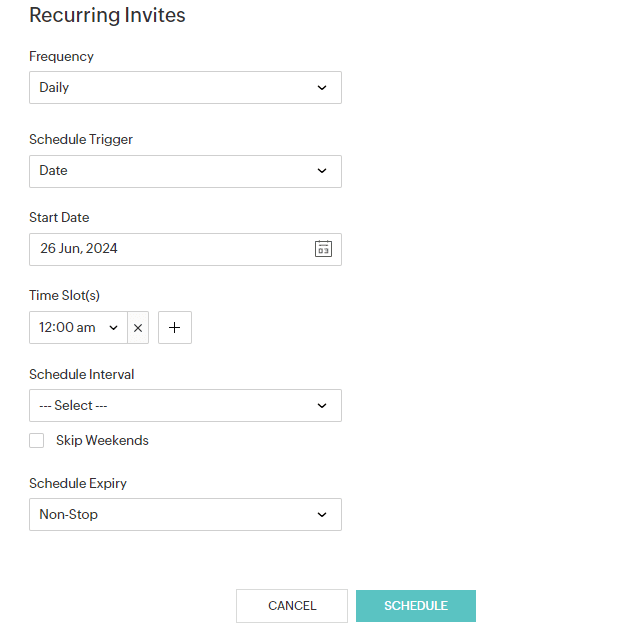毎週メールを配信する場合、[毎週]を選択し、メールを配信する曜日と時間帯を選択します。