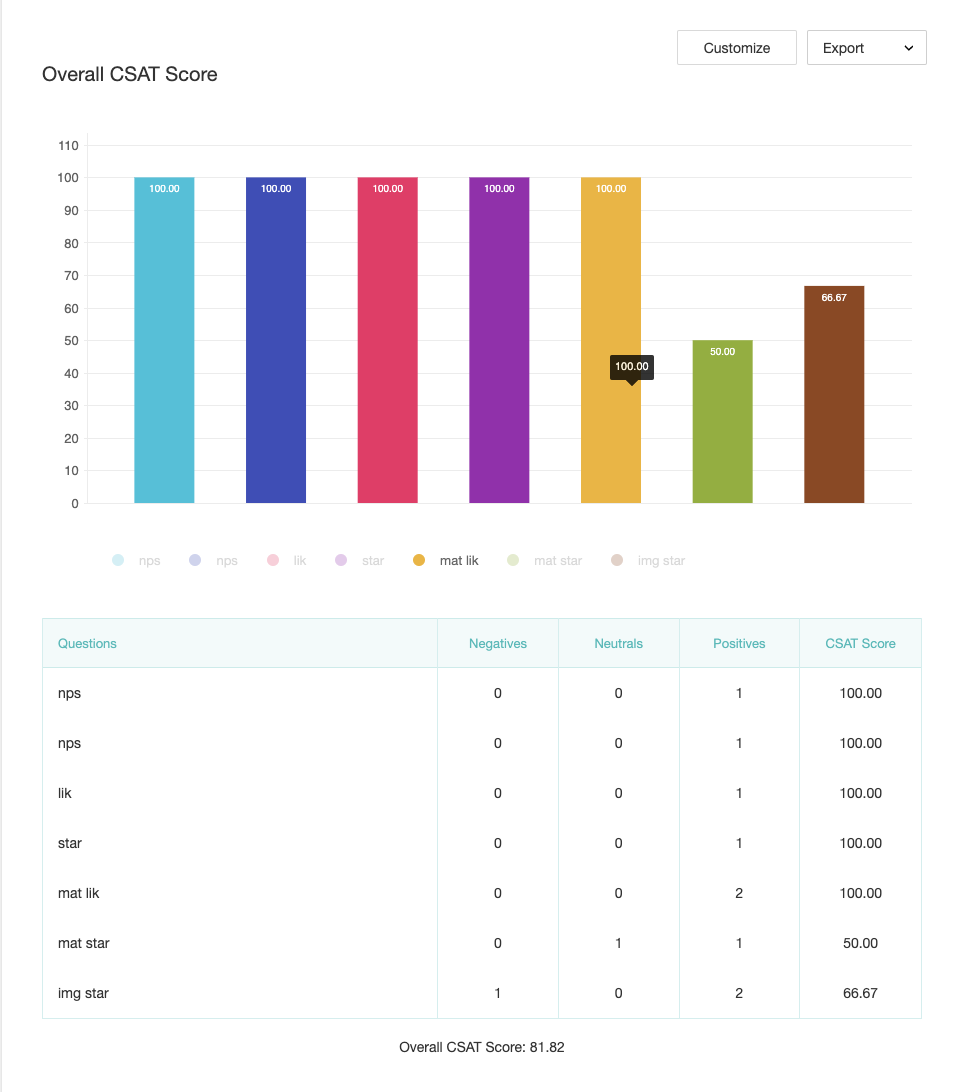 個々の回答の一覧で、[顧客満足度(CSAT)スコア]を確認できます。
