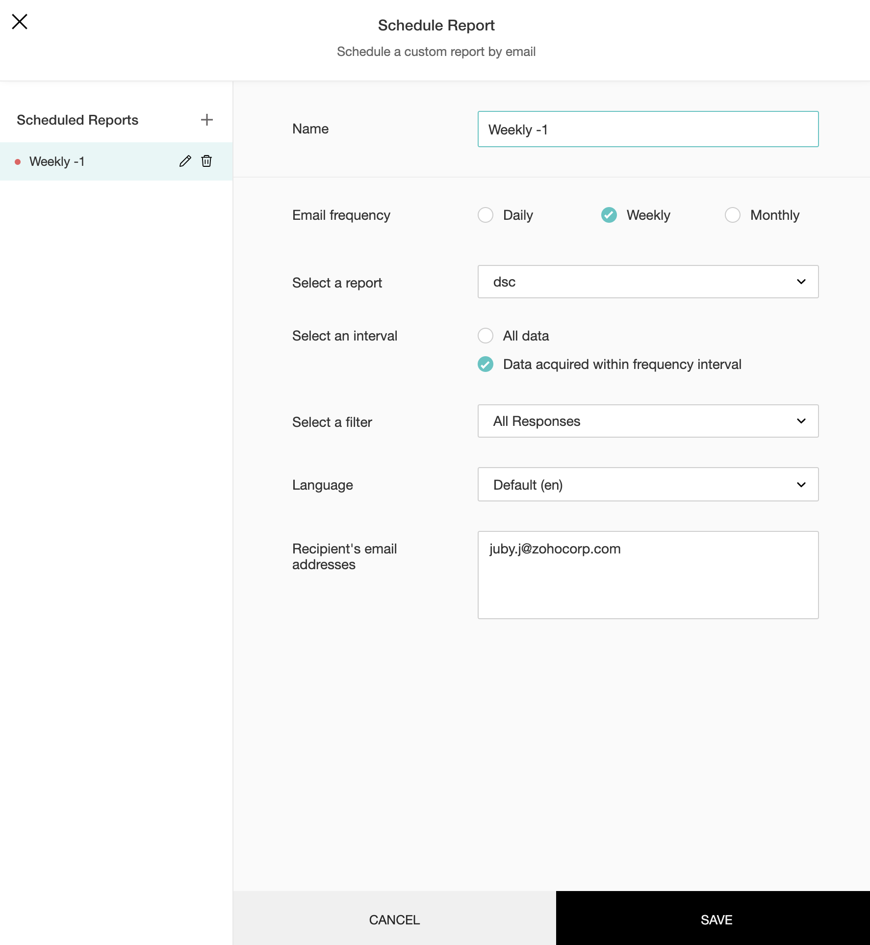 アンケートのレポートの定期送信
