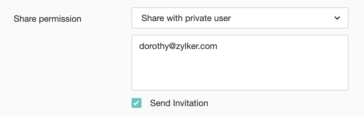 1. 個別に共有する:レポートを個々のユーザーと非公開で共有します。共有するユーザーのメールアドレスを入力します。ユーザーに共有レポートへの招待メールを送信しない場合、[招待を送信する]のチェックを外してください。