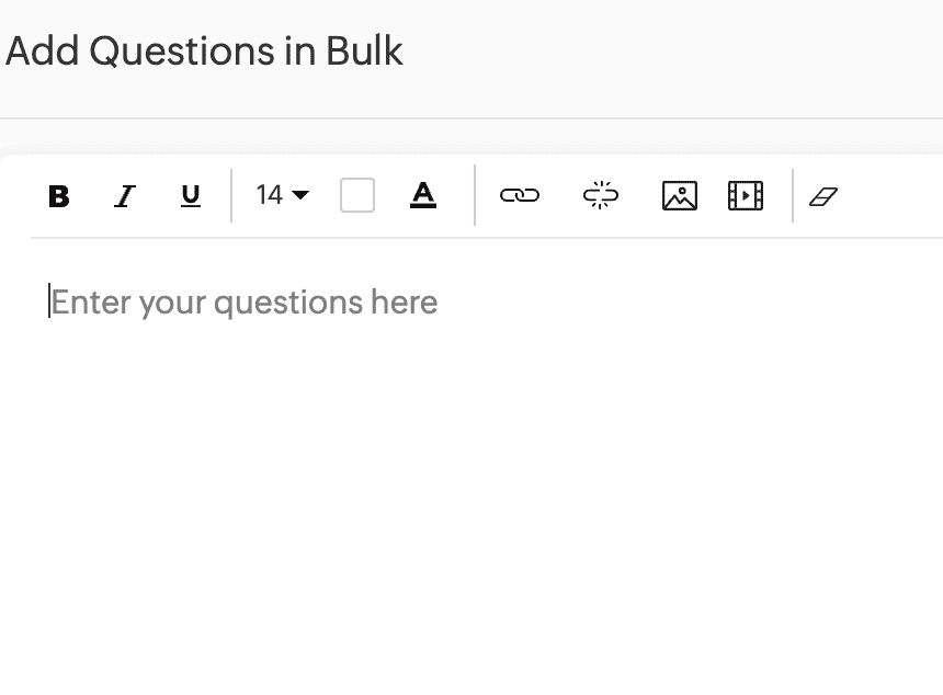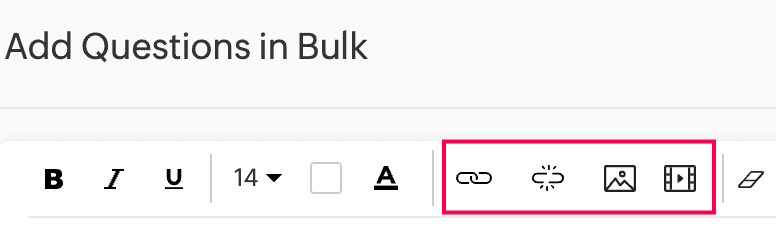 5. 各質問の下にはリンク、画像、動画を埋め込むことができます。画像や動画は直接コピーできないため、リッチテキストエディタを使用して手動で追加してください。