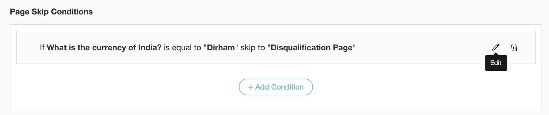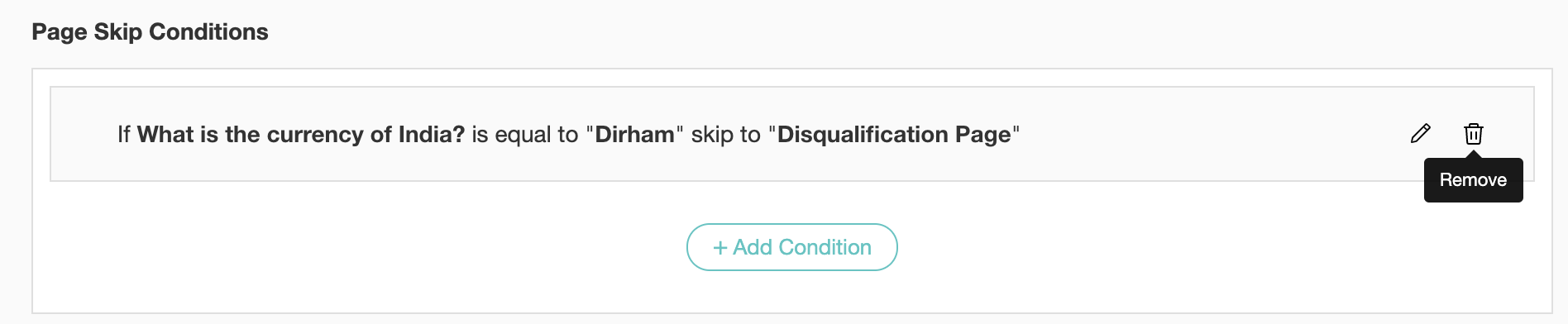 3. 回答内容に基づいて、回答者を特定のページに移動させるには、 [条件を追加する] をクリックします。