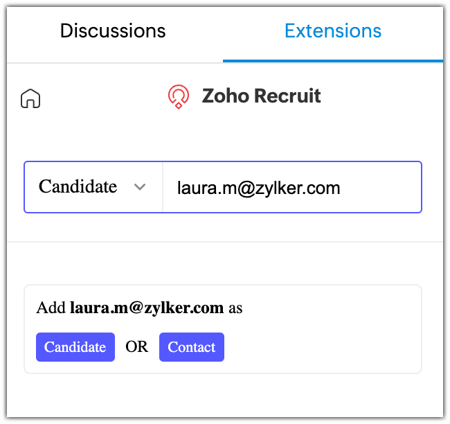 受信トレイから直接、メールアドレスをZoho Recruitの連絡先または候補者として追加できます。