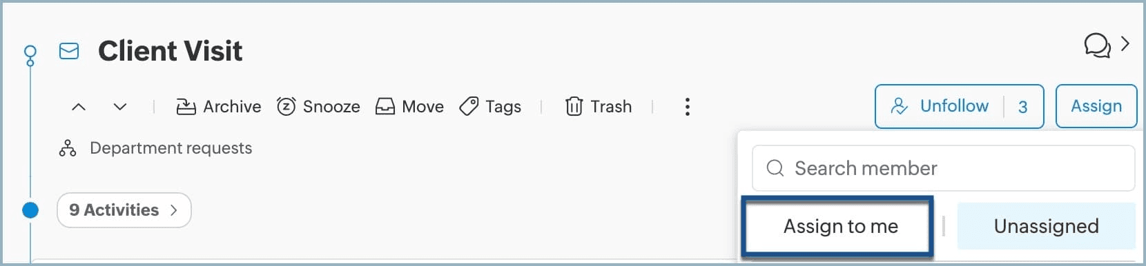 2. 該当するスレッドに移動し、右上の「Assign」をクリックします。