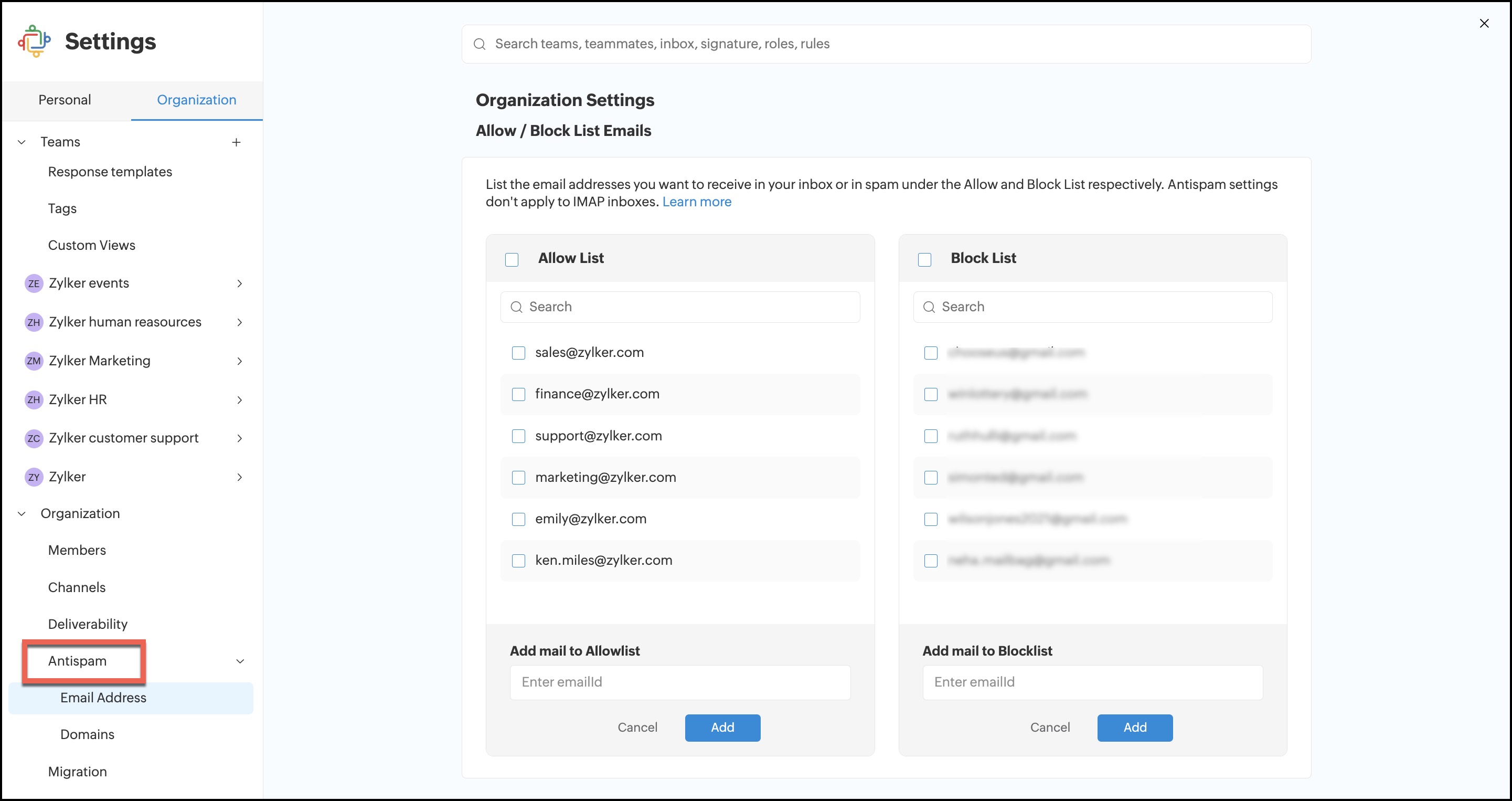 antispam 設定を利用すると、チームの受信箱に届く前に疑わしいスパムメッセージを簡単にフィルタリングできます。これにより、チームメンバーはスパムの影響を受けずに、必要な情報へアクセスできます。