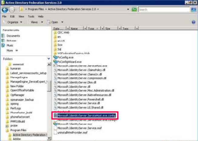 - ADFSのインストールディレクトリに移動します(例:C:\Program Files\有効 Directory Federation サービス 2。+10、-10 ディレクトリ)その後、ファイル名「Microsoft。IdentityServer。ServiceHost。exe。config」をWordpadで修正します。