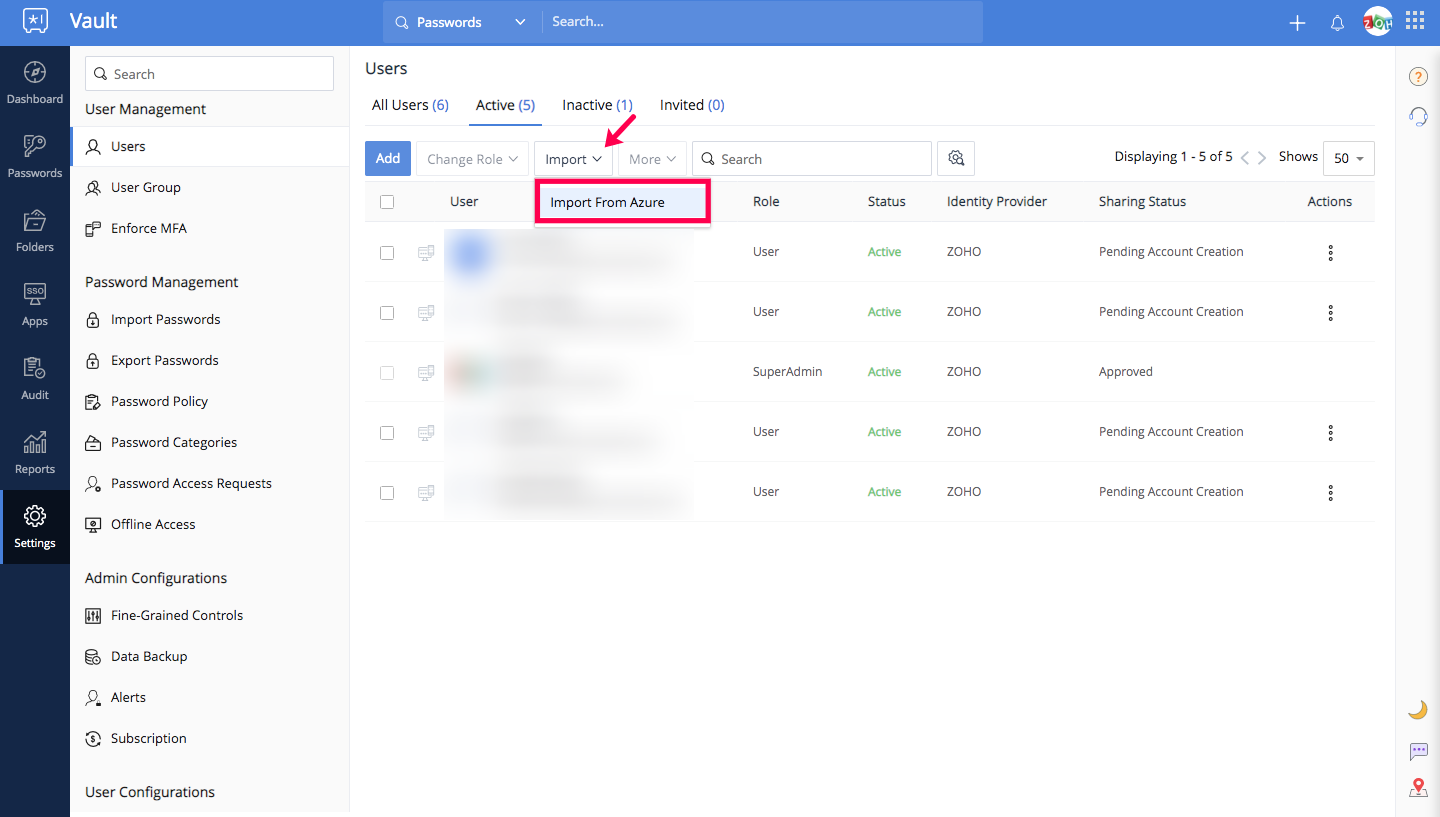 Office 365は数千のビジネスで運用に利用されています。Zoho VaultとOffice 365との統合は、管理者が素早くOffice 365からユーザーをインポートすることを可能にし、それによりユーザーはZoho Vaultで安全にパスワードを管理できます。この統合はユーザー管理を簡素化し、組織のセキュリティを強化します。また、ユーザーは既存のOffice 365の資格情報を使用してシングルサインオン(SSO)でVaultにアクセスすることもできます。