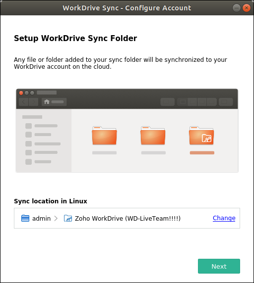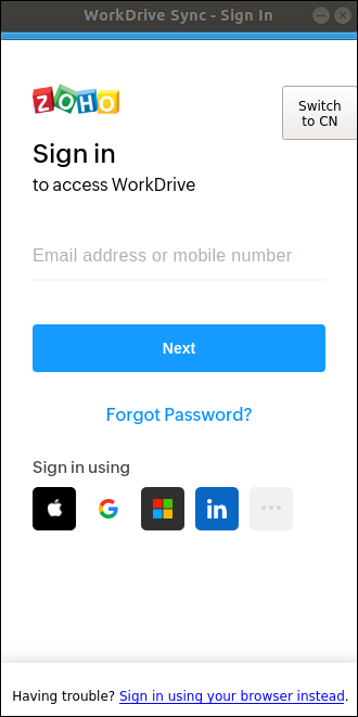 2. サインインするをクリックし、「Install and 設定 WorkDrive Sync for Linux」で説明されている手順に従ってください。
