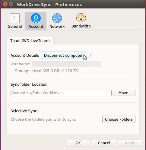 Zoho WorkDriveアカウントとパソコンの同期が不要になった場合、そのパソコンとの接続を解除できます。パソコンの接続を解除しても、すでに同期済みのファイルは削除されません。パソコンとZoho WorkDrive間の同期のみが停止します。すべてのファイルはWorkDriveのウェブ上で引き続き利用可能です。