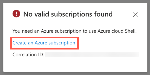 - 有効なサブスクリプションが見つからない場合は、作成を求めるメッセージが表示されます。
