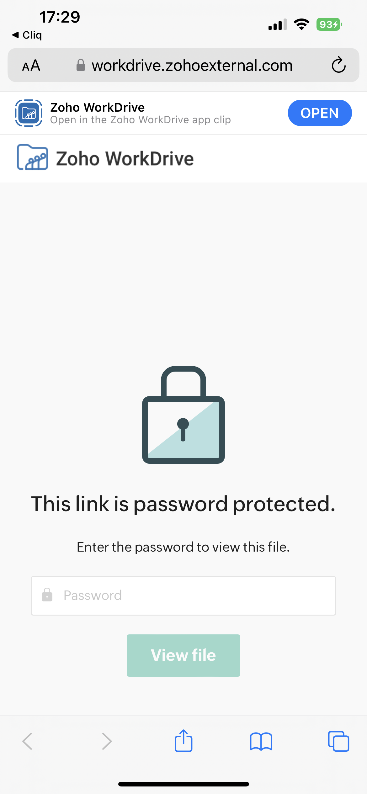 リンクがパスワードで保護されている場合は、パスワードを入力し、表示する Fileをタップしてください。