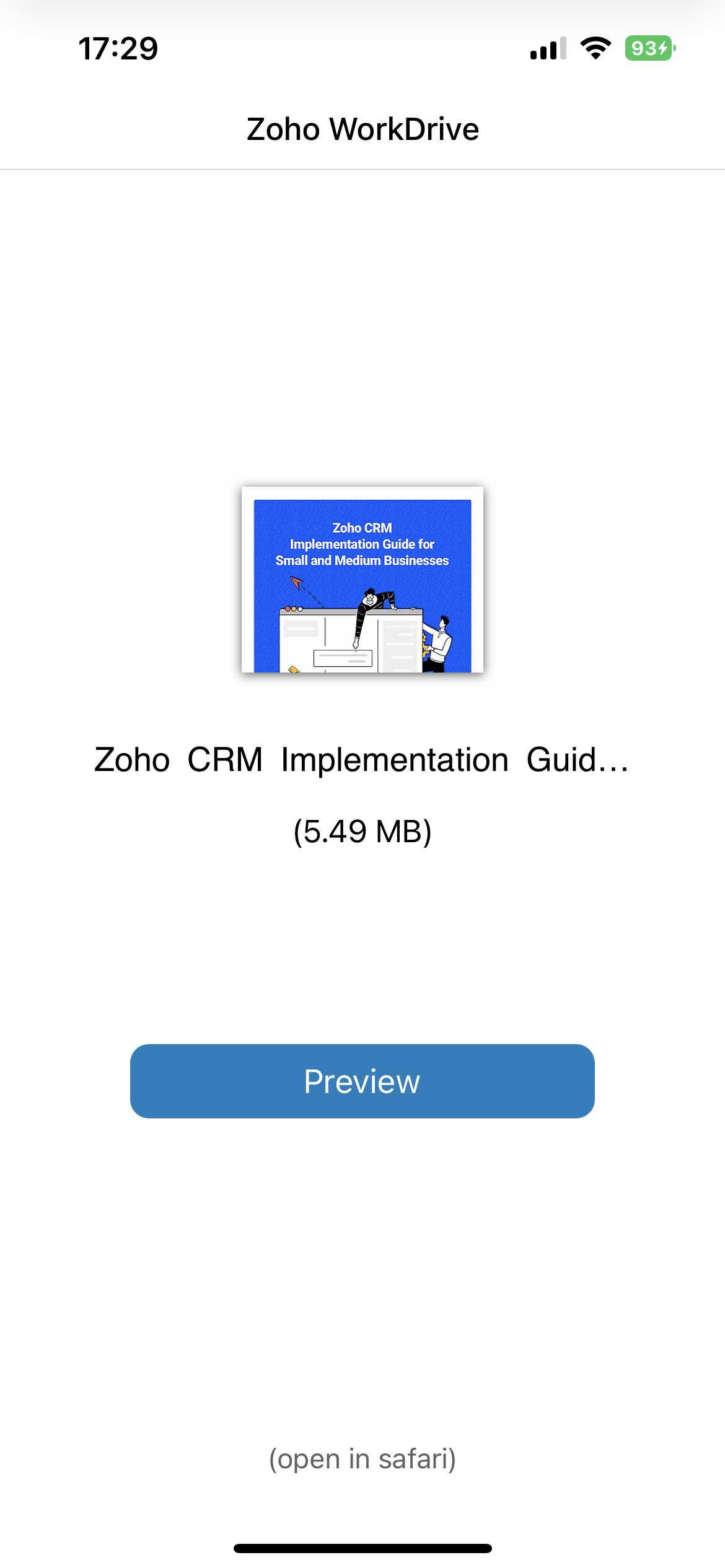 App Clipsを利用すると、App Storeからアプリをダウンロードすることなく、機能を実行できます。iOS 16のアップデートにより、WorkDriveはApp Clip機能に対応し、WorkDriveアプリをiOSにダウンロードせずに、ネイティブなリッチ体験でファイルを素早くプレビューできるようになりました。App Clipではファイルのプレビューのみ可能です。ファイルを編集または共同作業する場合は、App StoreからWorkDriveアプリをダウンロードしてください。