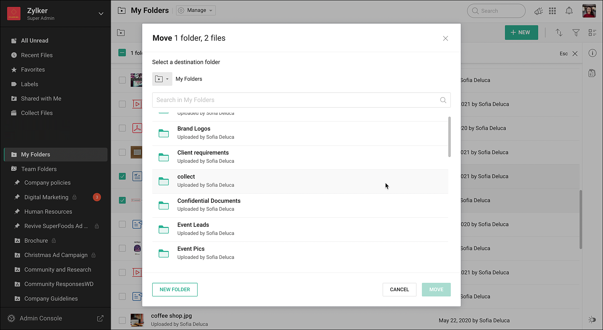 1. コラボレーターとして、編集権限以上がある共有フォルダーへファイルやフォルダーを移動できます。