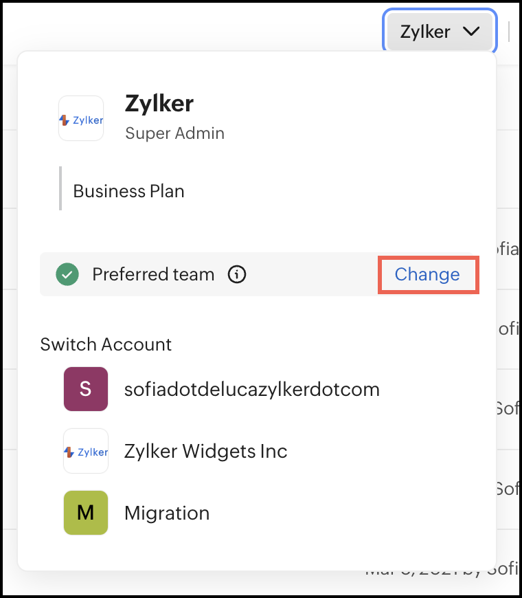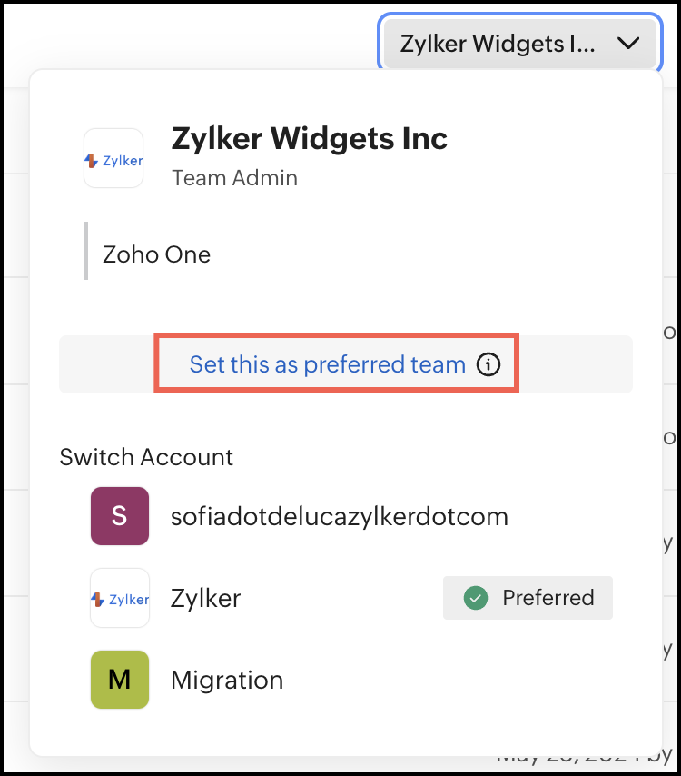 Zoho WorkDriveでチームを切り替え、お気に入りのチームを設定する