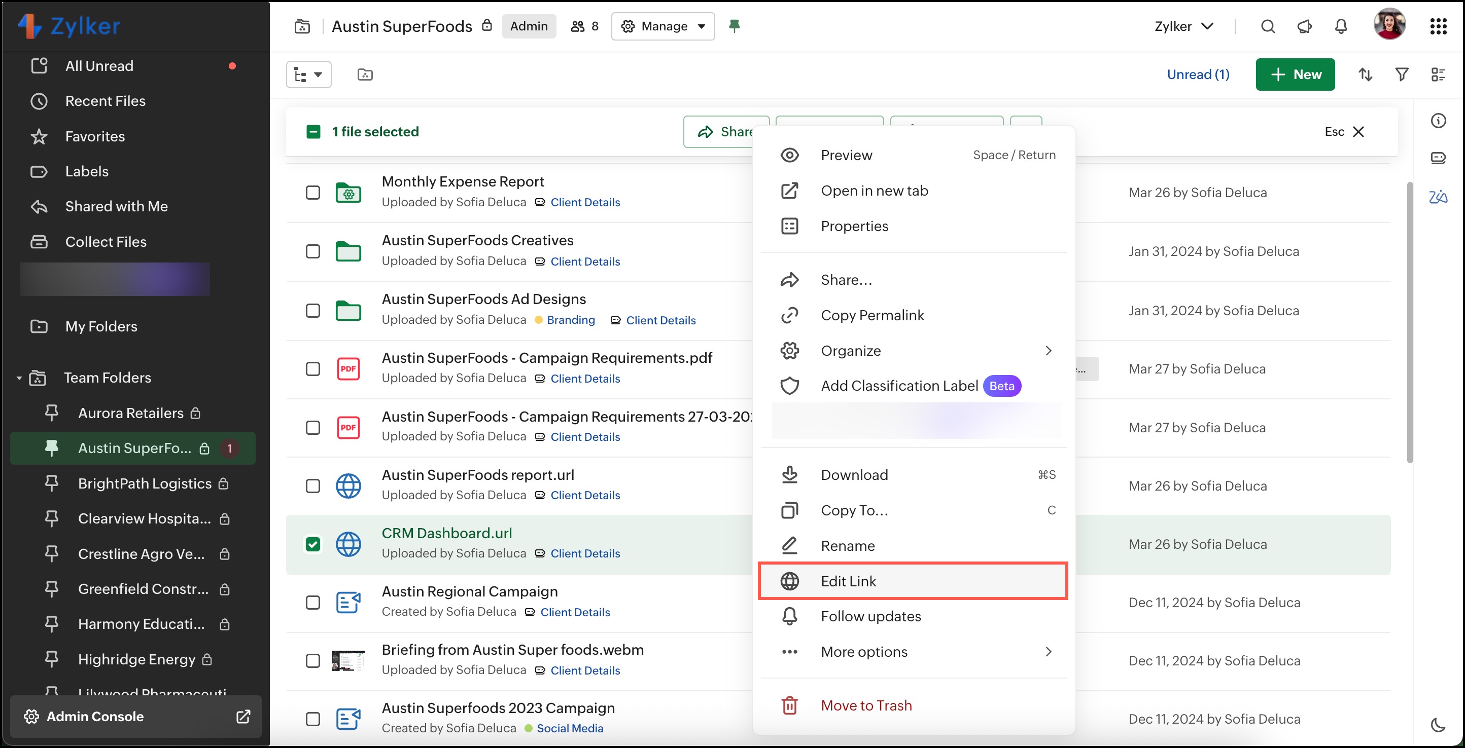 WorkDriveでリンクを作成・管理する
