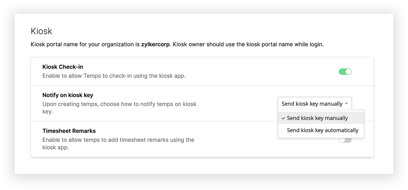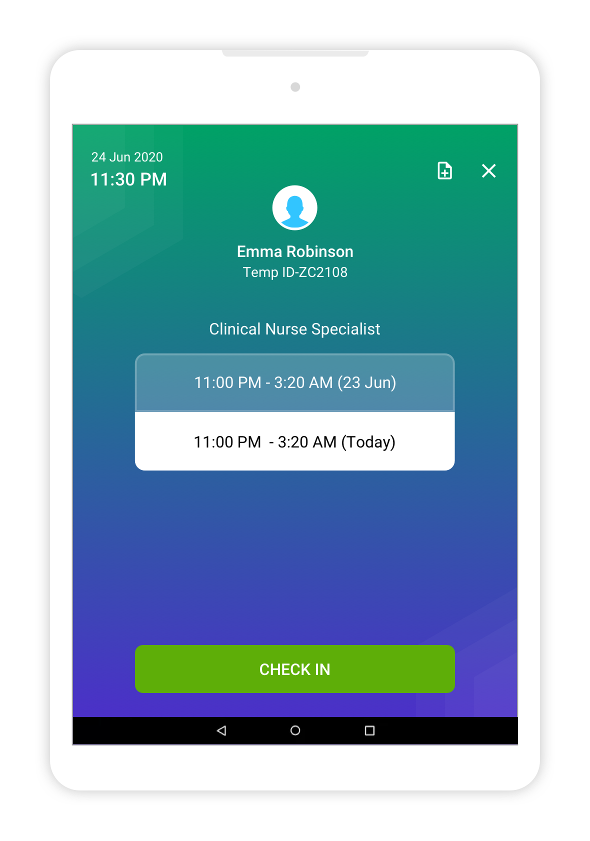 Workerly Kiosk(Zoho Workerly 差出人)は、同じ場所で勤務する派遣スタッフのための理想的なソリューションです。シンプルで使いやすく、コストパフォーマンスに優れ、持ち運び可能な打刻機として、時間管理の新しい選択肢となります。インターネット接続があるAndroidデバイスで利用できます。複雑なユーザー名やパスワードは不要で、スタッフはKioskキーを使って出勤・退勤や休憩の打刻が可能です。