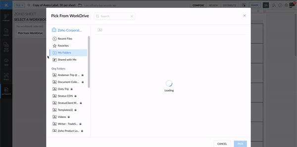 3. Zoho Sheetに保存されているアドレスファイルをWorkDriveから選択します。
