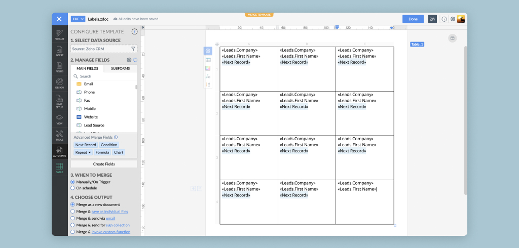 Zoho CRMデータを使用してメールマージでラベルを生成する方法