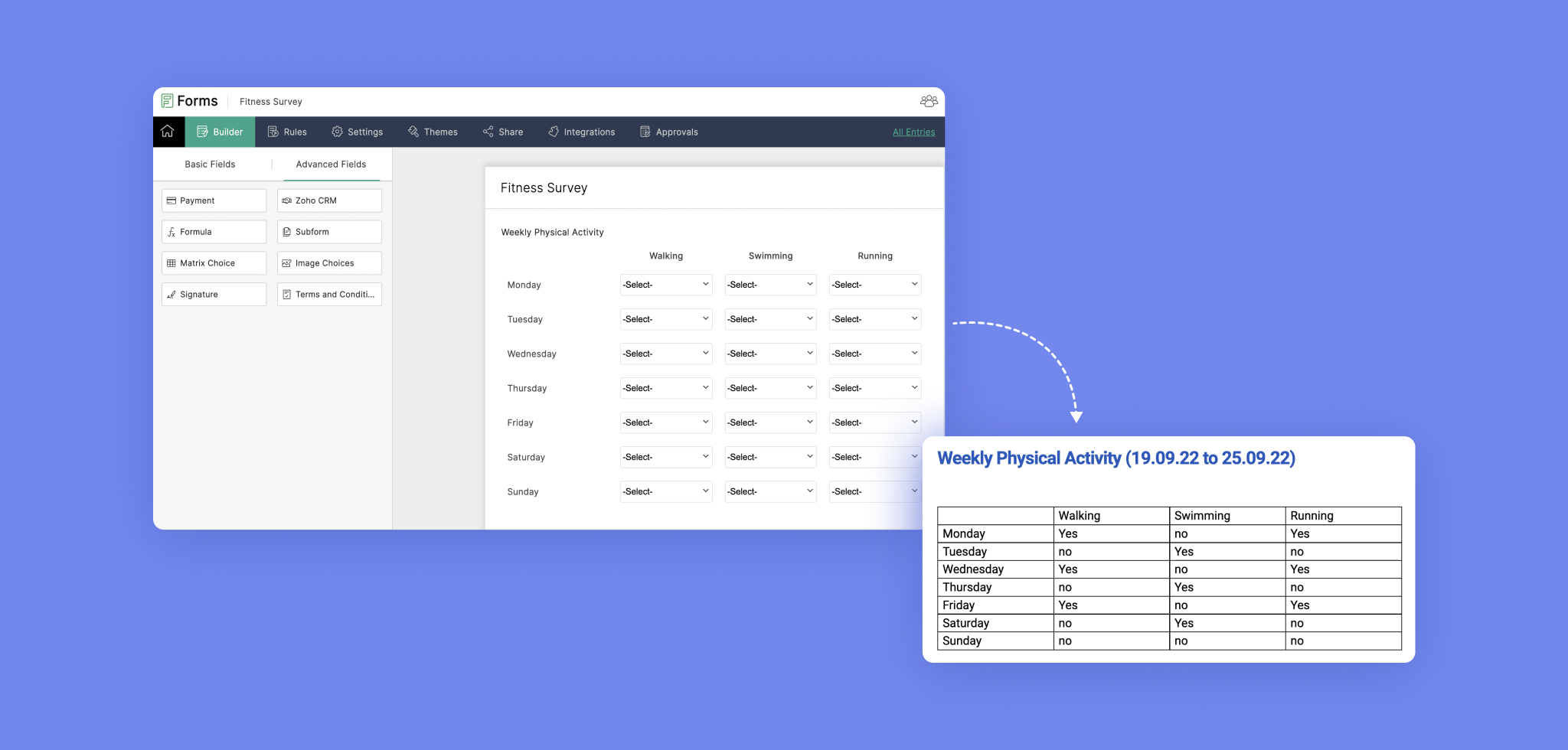 Matrix 項目を使用してフィードバックやアンケート回答を収集すると、マージされたドキュメント内で全ての回答を表形式で表示できるため便利です。これにより、複数の列設定を特定の行に適用して行を簡単に評価またはフィルタリングできます。必要な行数や列数、適切なヘッダーでMatrix 項目を作成できます。できること: