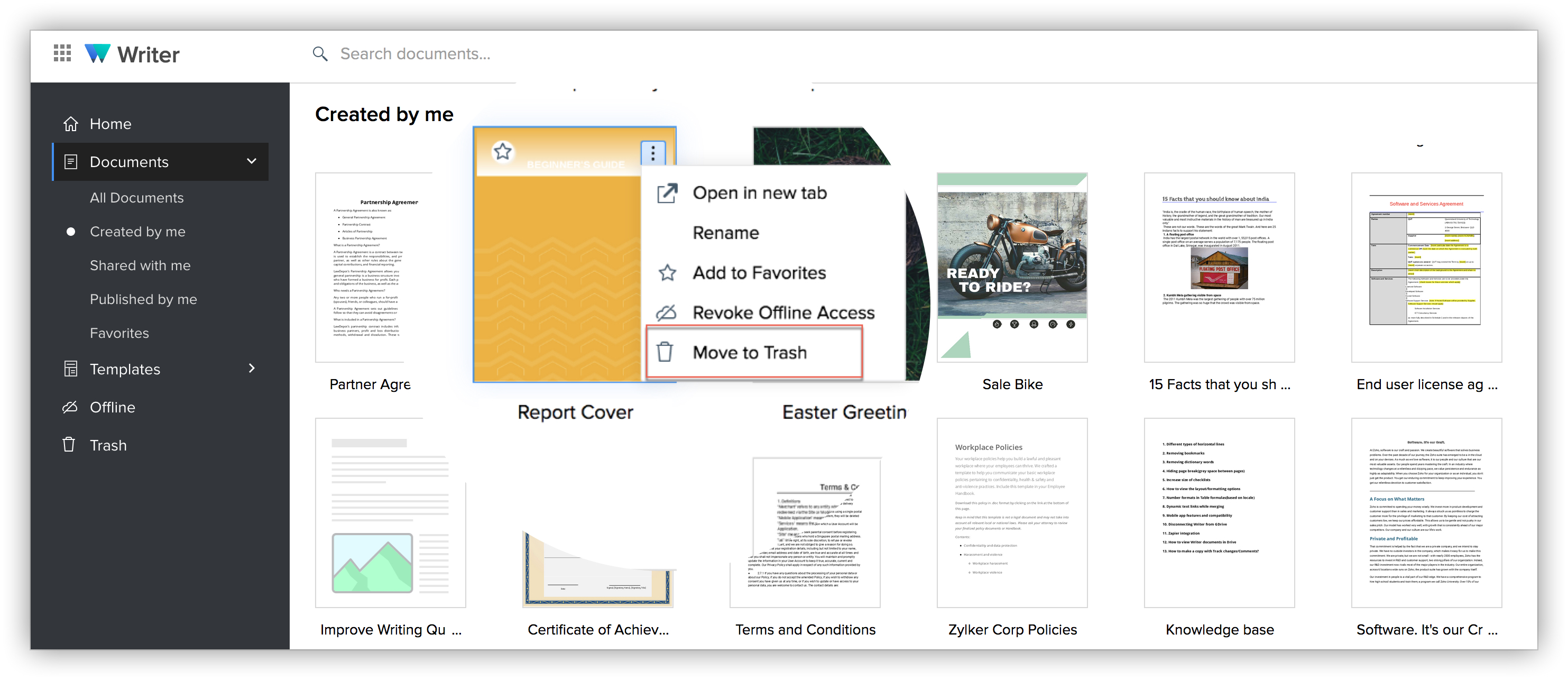 ファイルやフォルダー構成を変更したい場合、任意のドキュメントを別のフォルダーへ移動できます。