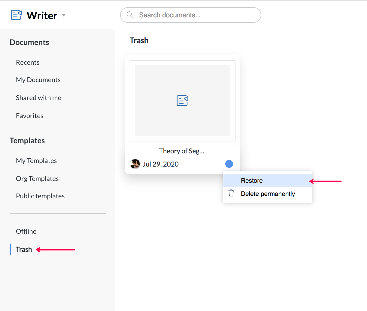 以下はZoho Writerドキュメントを整理するさまざまな方法と、その手順です。