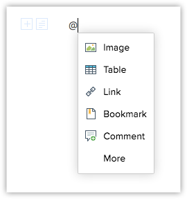 これを行うには、文書に@と入力します。これにより、画像、テーブル、その他の要素を挿入するためのドロップダウンメニューが表示されます。