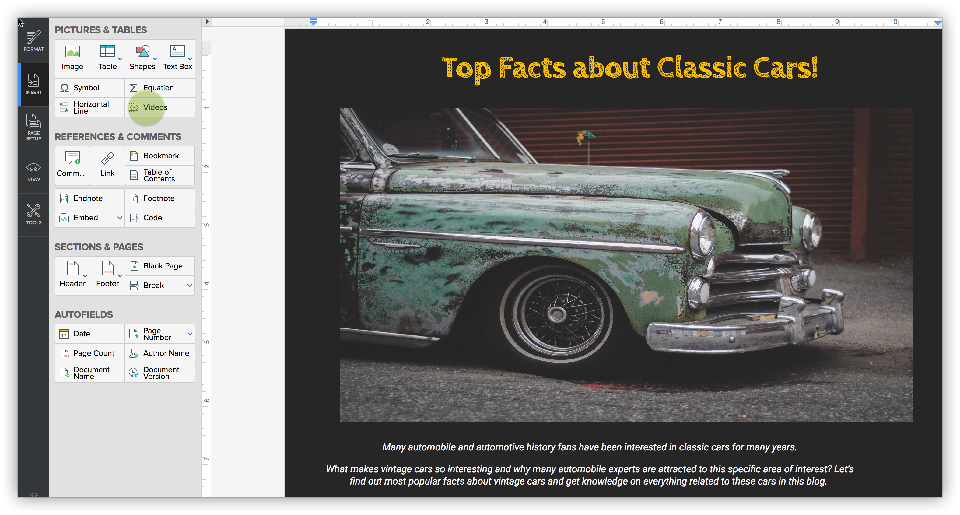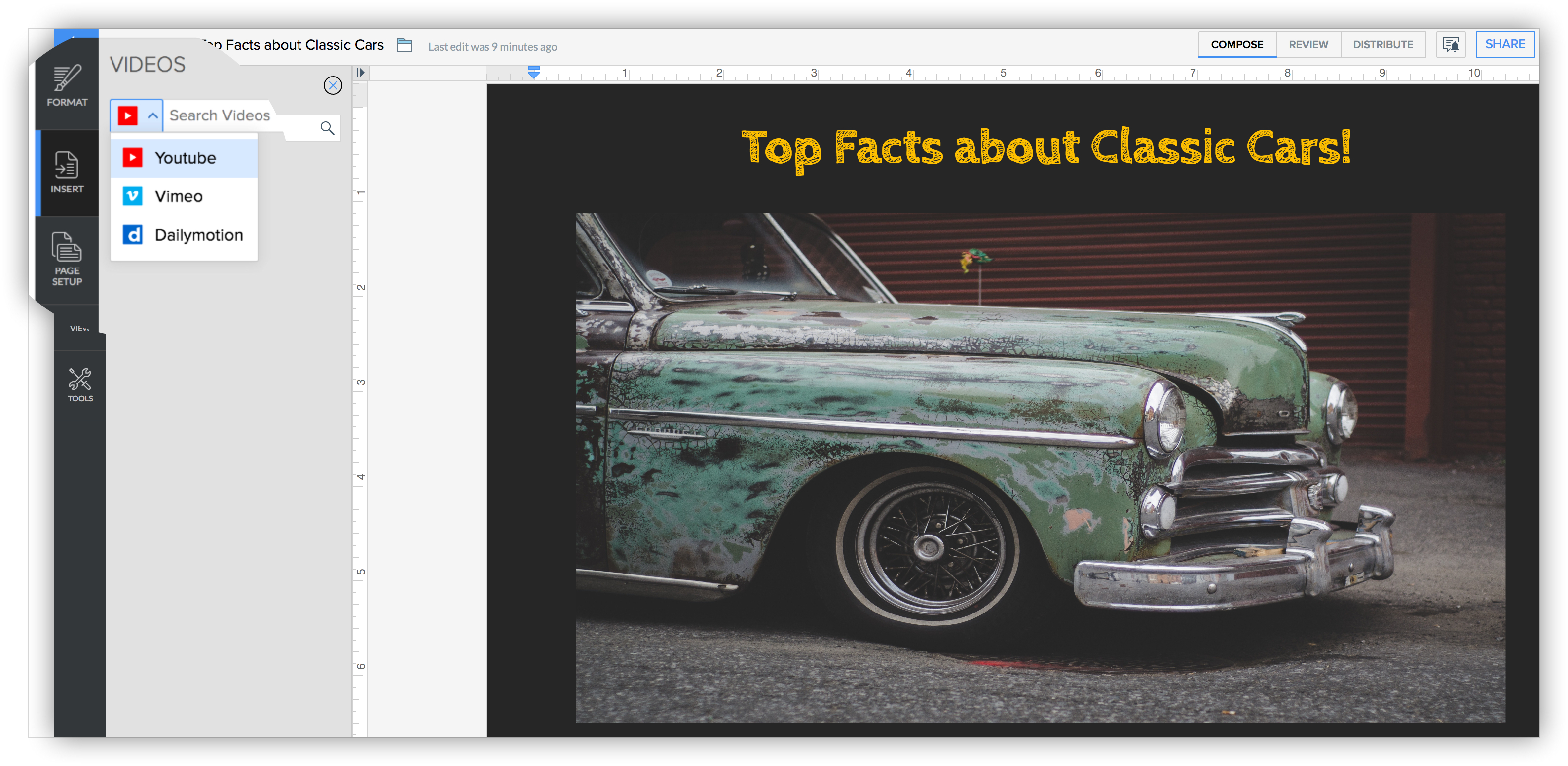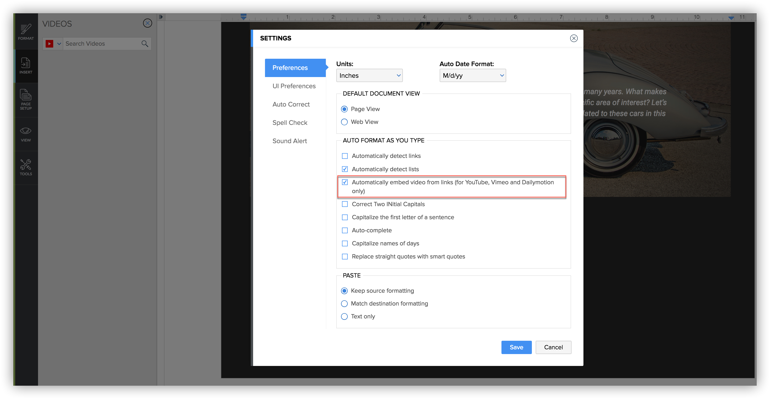 YouTube、Vimeo、Dailymotionから動画を直接アップロードし、ドキュメント内で使用できます。