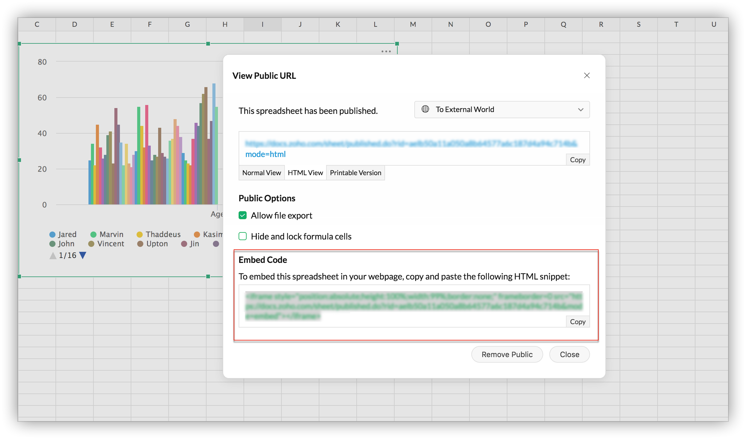 例として、Zoho Sheetからグラフを埋め込む場合は、以下の手順に従ってください。