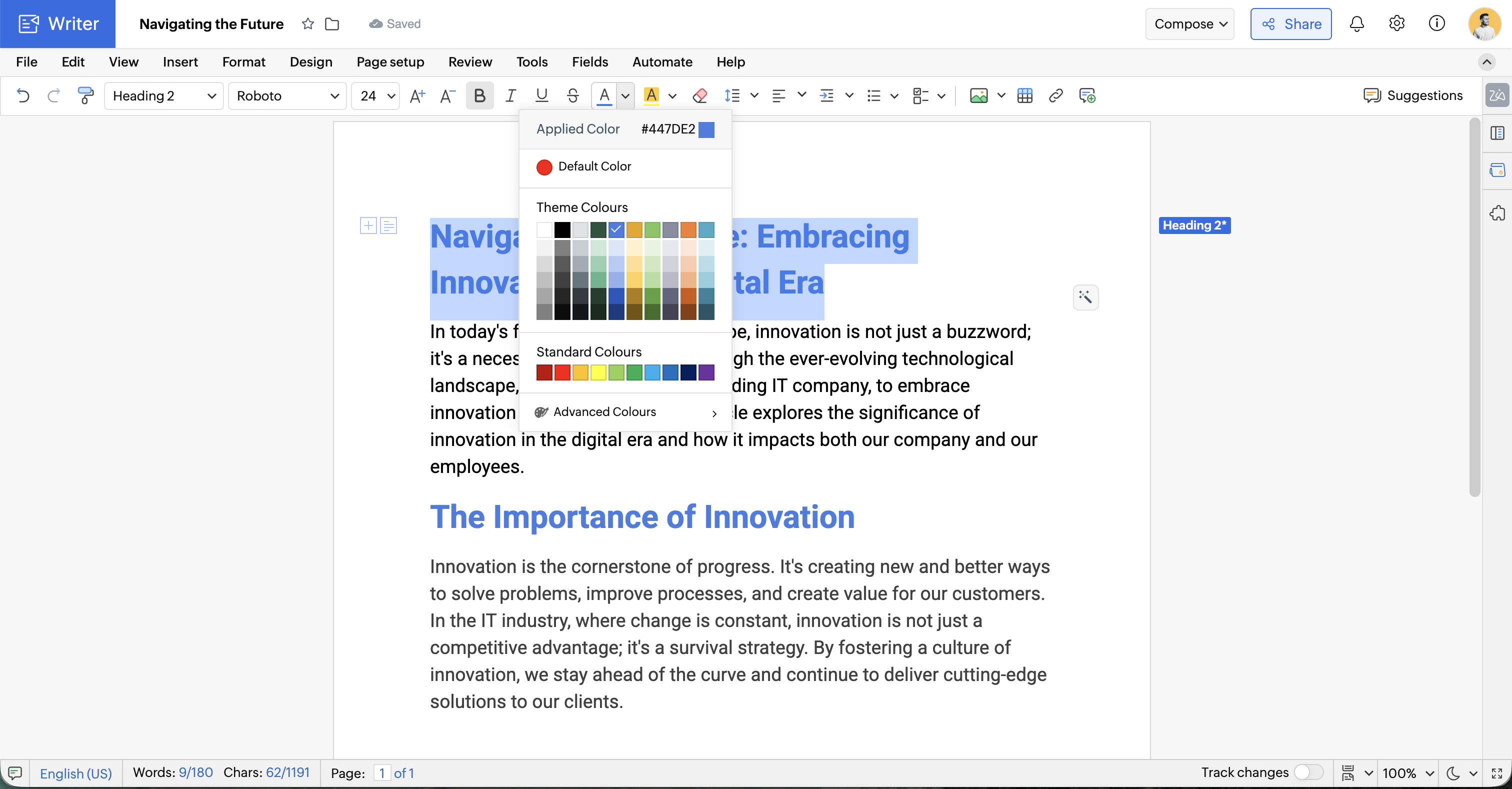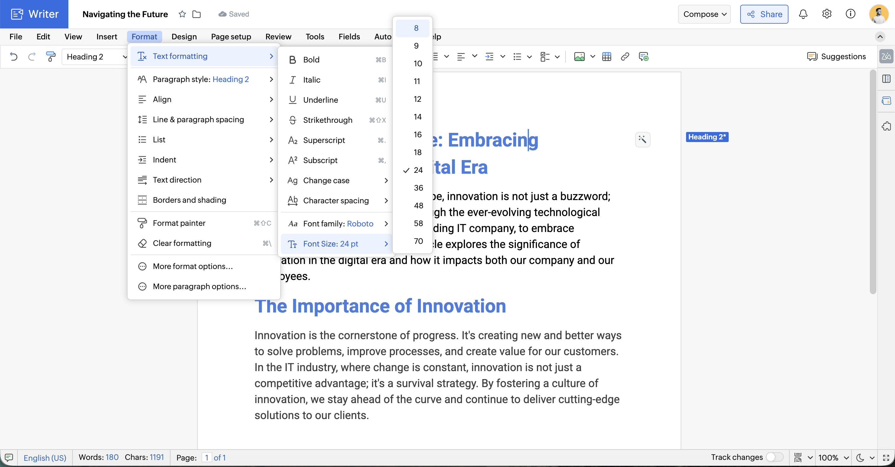 フォントの太さは、ドキュメントをダウンロードした場合や、他のクラウドドライブから Writer アカウントにインポートした場合でも保持されます。