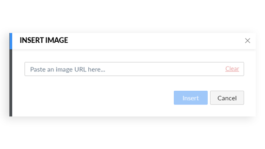 - 画像のURLを入力または貼り付けます。URLを入力すると、画像のプレビューが表示されます。挿入をクリックします。