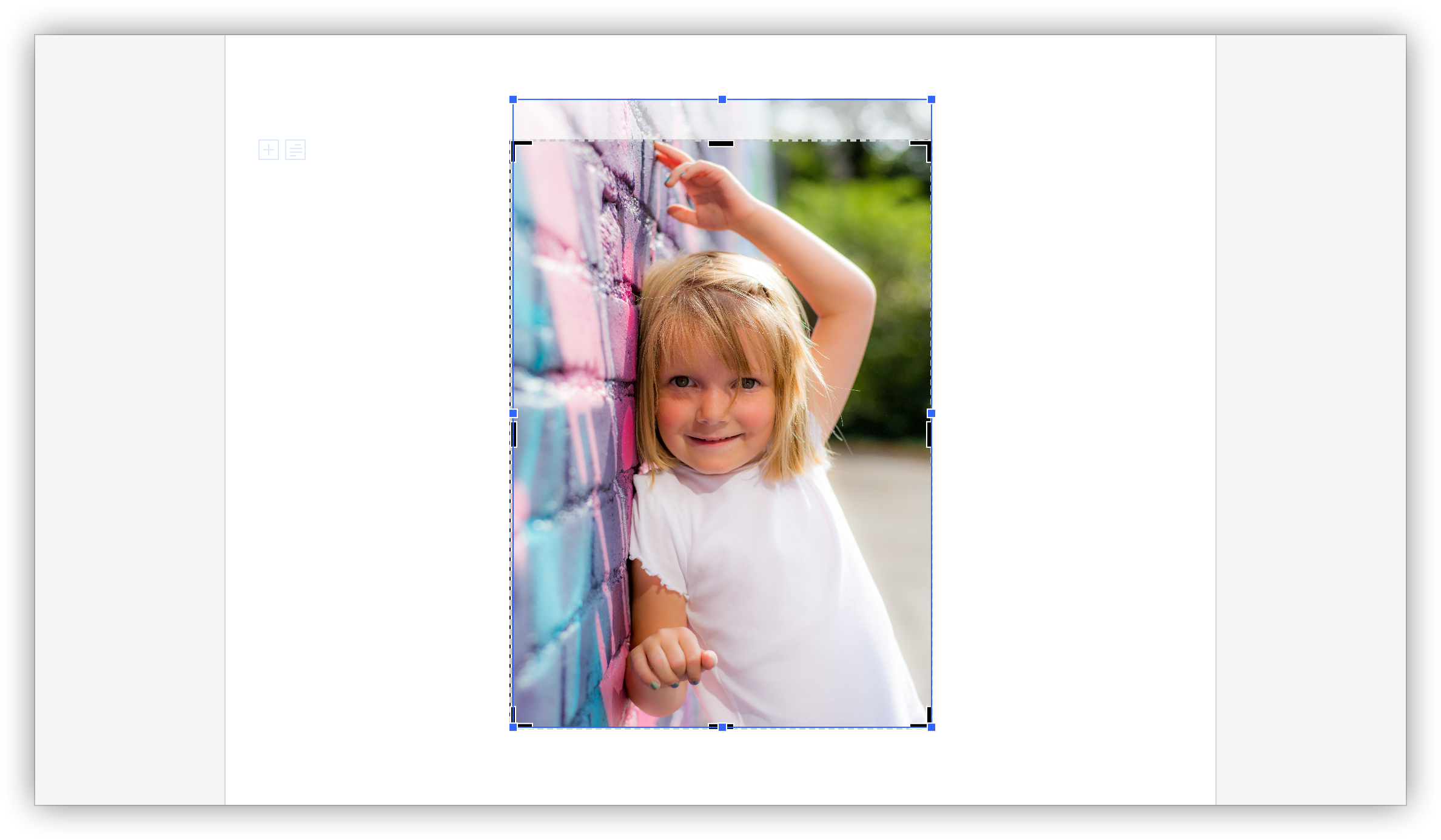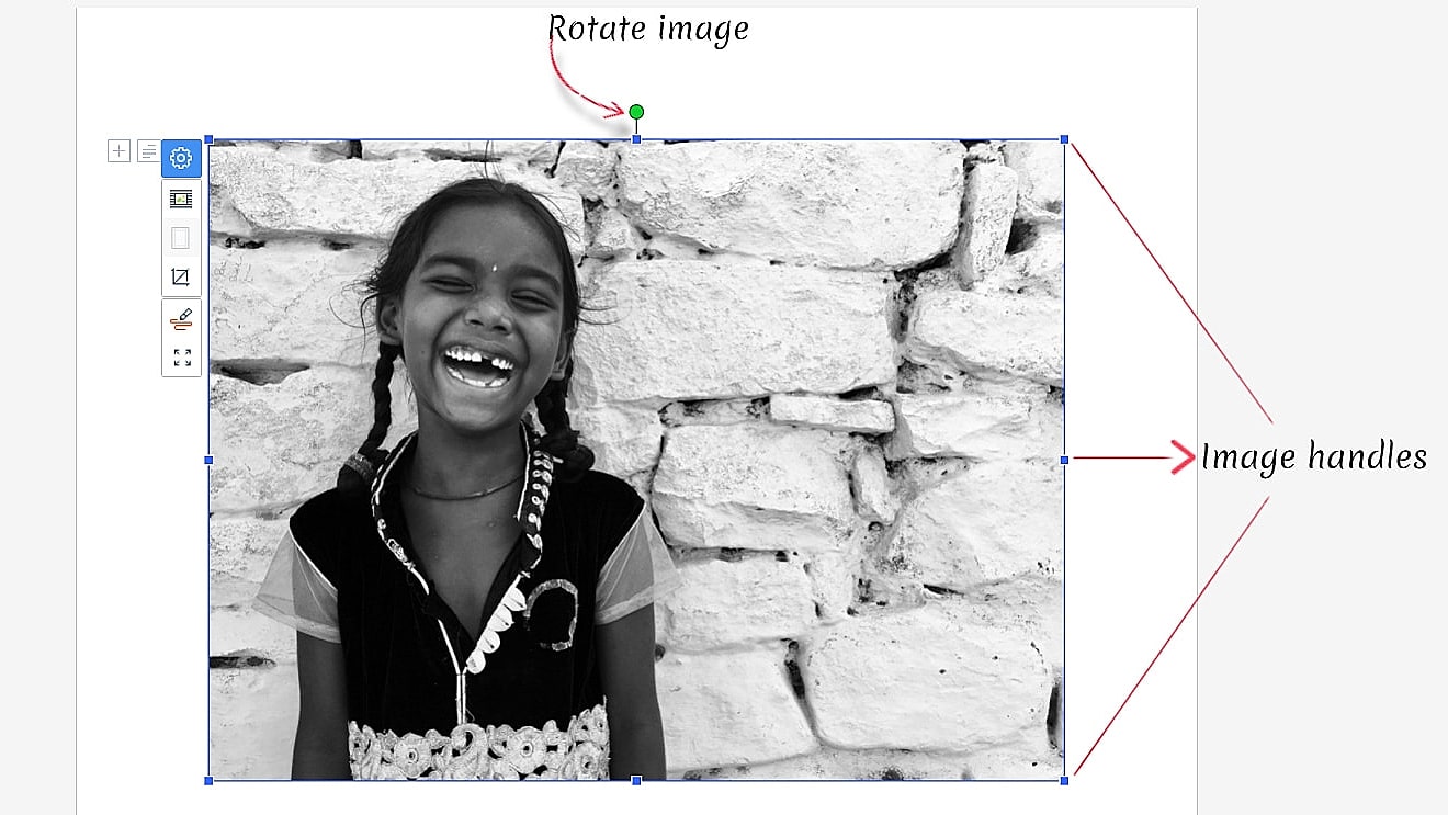 挿入された画像をクリックすると、画像の左上にビジュアルキューが表示され、いくつかの操作が実行できます。