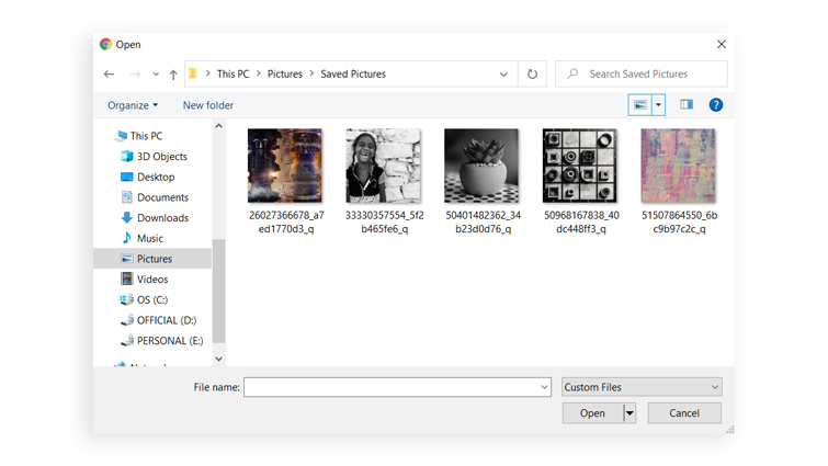 - 並べ替えオプションを使うと、画像をより簡単に選択できます。新しい順、古い順、または名前順で、ご希望に応じて並べ替えを行ってください。