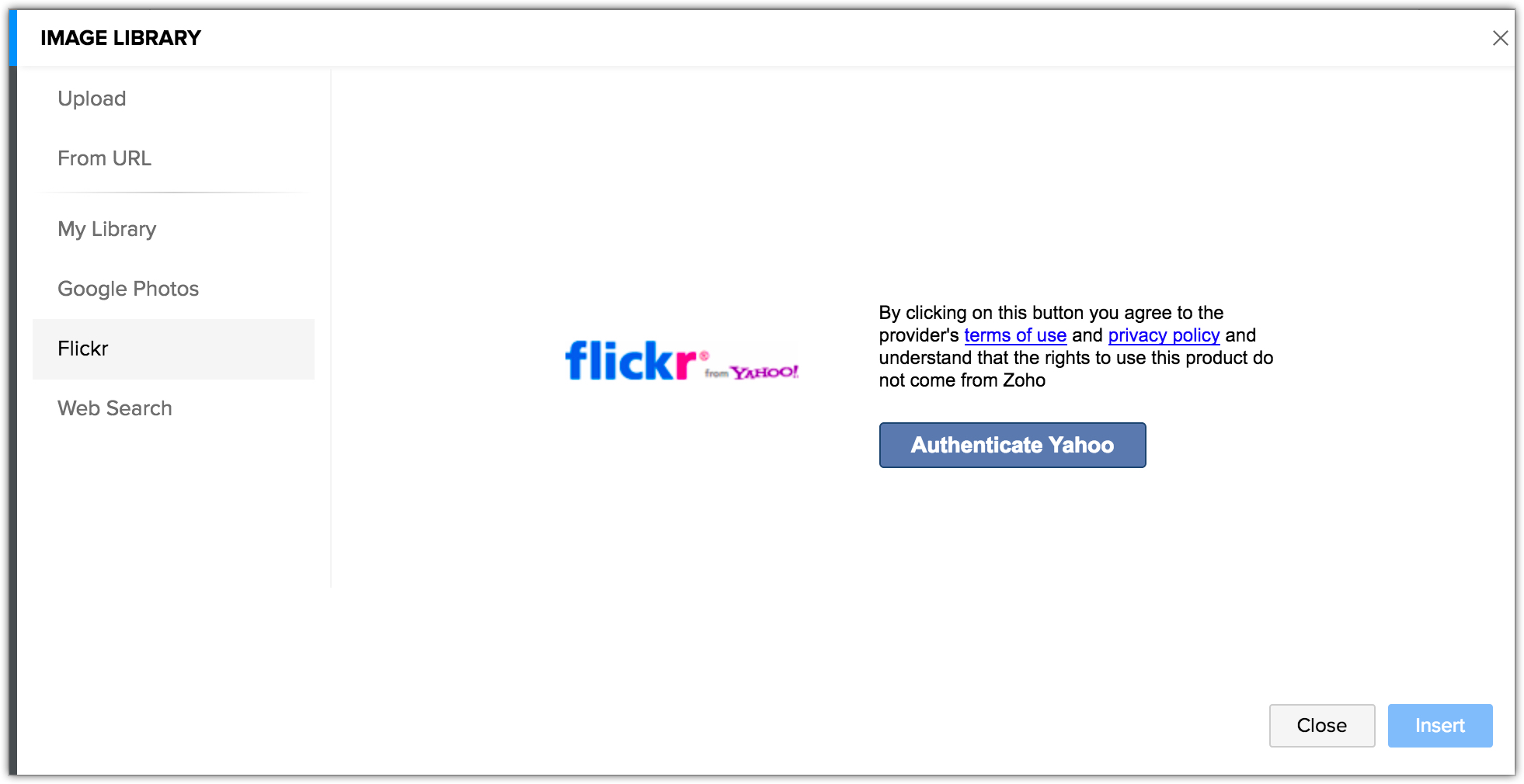 Flickrアカウントに保存されている画像も、簡単にWriterにアップロードできます。