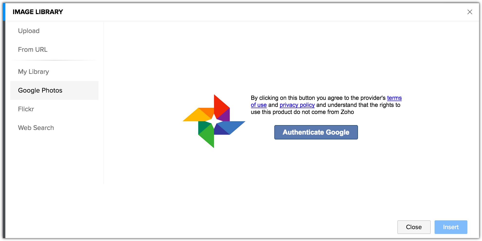 Googleアカウントを認証して、Writer内でGoogleフォトを同期できます。