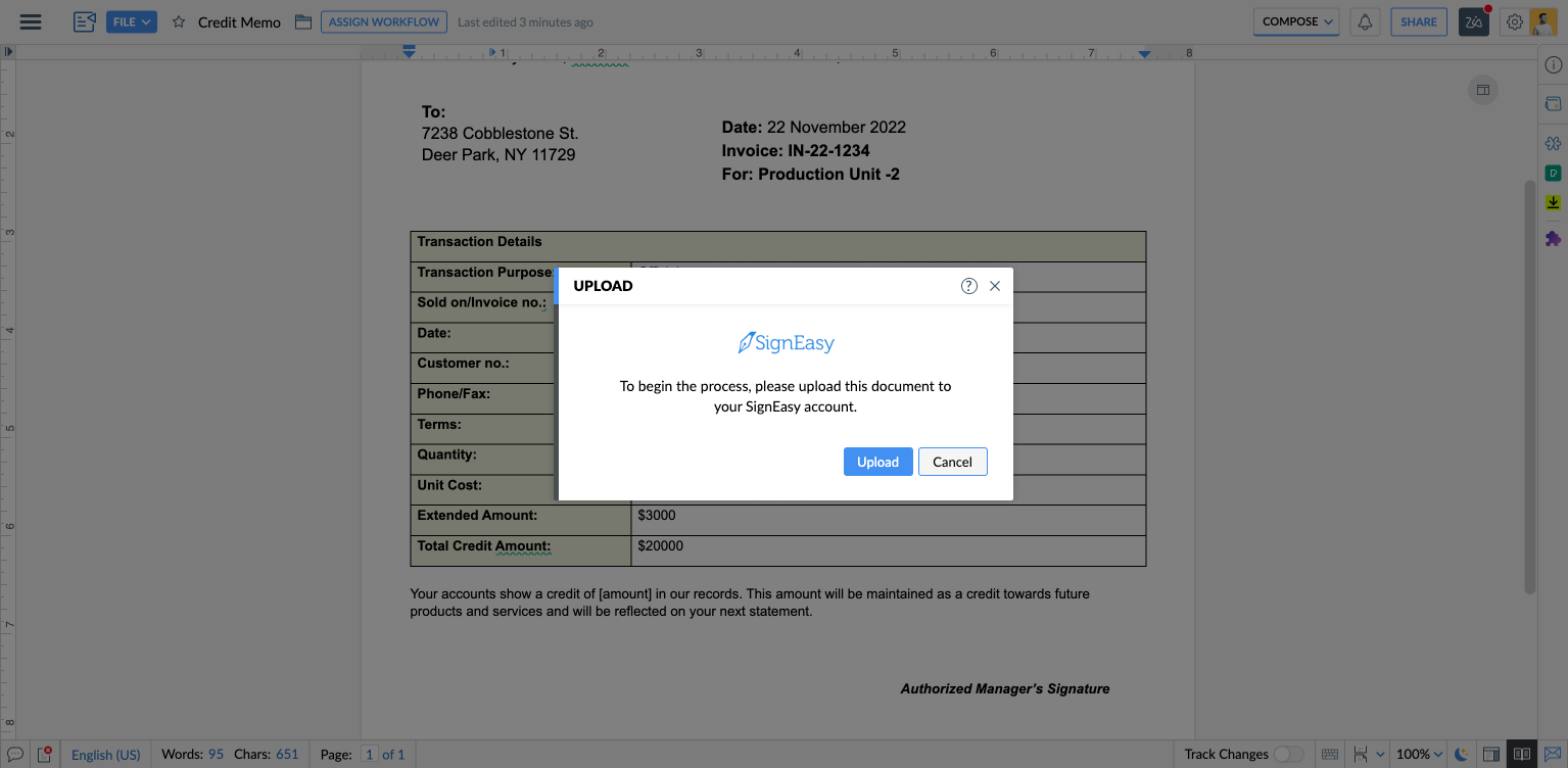 Zoho WriterはSign Easyと連携しており、ドキュメントへのデジタル署名時にスキャナーソフトウェア、署名パッド、またはデジタル証明書が不要になります。Writer拡張機能を利用して、Writer内で直接ドキュメントに電子署名できます。