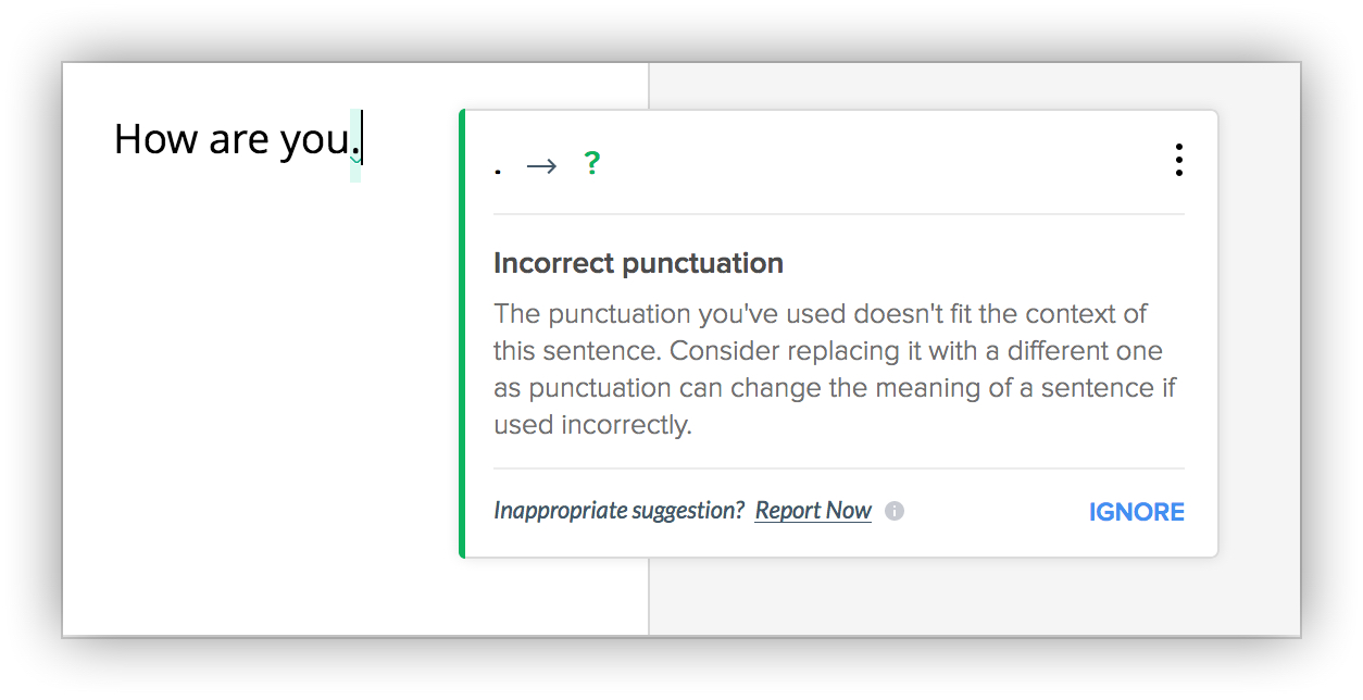 通常、文章の最初の文字、人名、場所、国籍、言語、月、日、代名詞「I」などは、文章を書く際に大文字で始める必要があります。不正確な大文字の使用は大文字化エラーとして表示されます。